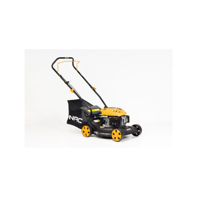 Benzinska kosilica NAC 40 opremljena je modernim motorom s obujmom gornjeg ventila od 79,6 cm 3 i maksimalnim okretnim momentom od 3,5 Nm s rukavcem cilindra od lijevanog željeza, karakteriziran besprijekornim radom i ekonomičnom potrošnjom goriva.Mala veličina i mala težina čine kosilicu vrlo jednostavnom za manevriranje i lakom za transport i skladištenje. Kosilica ima trostupanjsko podešavanje visine rezanja za svaki kotač u rasponu od 25 do 60 mm. Ergonomske ručke olakšavaju upravljanje kosilicom.motor: NAC SG300, OHV, 4-taktni, gornji ventilobujam motora: 79,6 cm3maksimalni obrtni moment: 3,5 NmNazivna snaga stroja: 1,3 kWbrzina vrtnje: 2800 okretaja u minutiVrsta goriva: benzin Pb95Kapacitet rezervoara za gorivo: 0,8 litarakapacitet korita ulja: 0,5 litaraširina košnje: 40 cmpodešavanje visine rezanja: ručno, trostupanjskoraspon podešavanja visine košnje: 25 mm - 60 mmkapacitet košare: 60 litaratenk:mrežapromjer prednjeg kotača: 15 cmpromjer stražnjeg kotača: 15 cmfunkcije: stražnje pražnjenje, pražnjenje u košarupočetak: priručniktežina: 20 kg