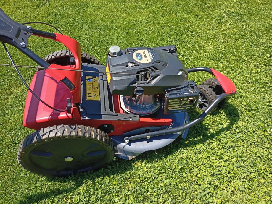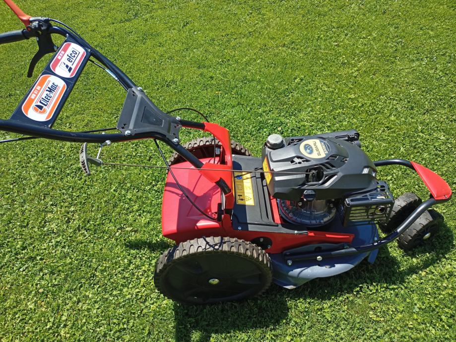 Odličan stroj, stražnji pogon preko lanca, pogon noža preko remena štiti motor od udaraca noža u panjeve, ukratko profi stroj.