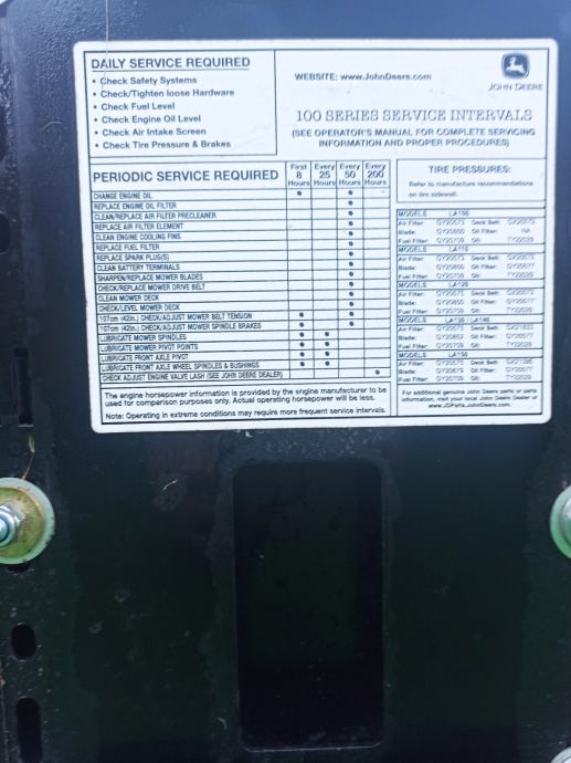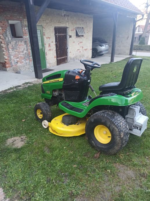 Kosilica za travu, John Deere, 24 ks, 2 cilindra, hidro pogon, 107 cm širina košnje, u odličnom stanju. Kosilica se nalazi u Velikom Trgovišću, Dubrovčan 114, 2100 eura, 091/3487972.