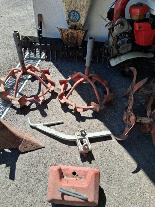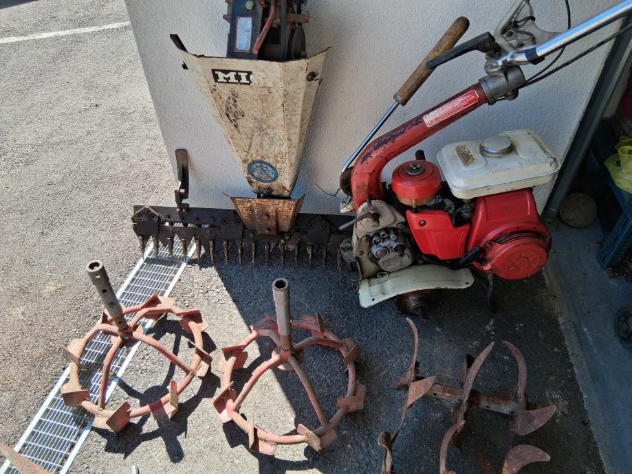 Prodajem korištenu kopačicu MIO Standard Osijek sa originalnom kosilicom, običnim kotačima, metalnim kotačima, plugom, crtalom, frezom i utegom. Dugo vremena nije korištena pa je portebno sve ispitati prije puštanja u rad. Prikazana cijena je za sve u kompletu sa slika.