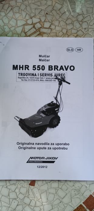 Motorna kosilica MHR 550 BRAVO. Kosilica idealna za visoku travu snage 4.4 kW/ 7 ks Nož malčer širina košnje 55 cm. Kosilica stara 7 godina redovno servisirana svaku godinu. Sa njom se kosilo 3 puta godišnje u proljeće kad je trava bila visoka. Cijena 760 eura