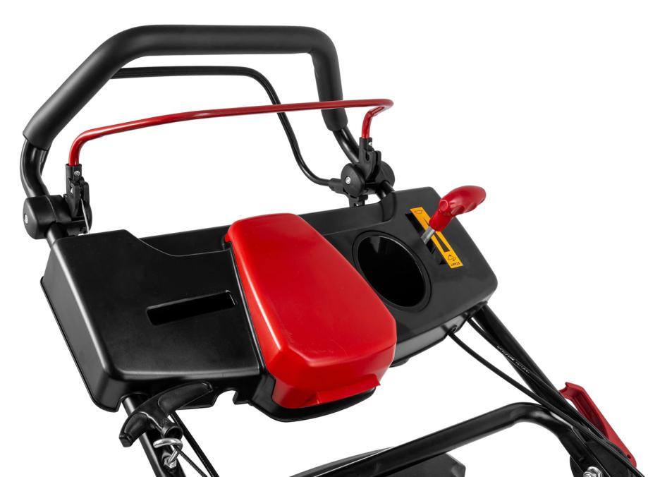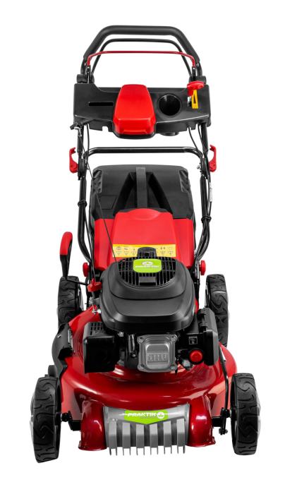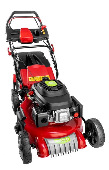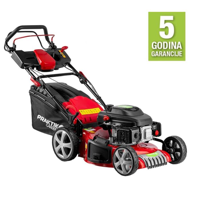 Rotaciona samohodna kosilica za sve vrste travnjaka. Benzinski četverotaktni motor ima optimalne snage da u svakom trenutku može isporučiti dovoljno snage za sva opterećenja. Lako paljenje pomoću startnog mehanizma kojeg možemo postaviti u dva položaja: prvi položaj kao kraća potezna špaga odmah na motoru ili drugi položaj kao duža potezna špaga kako bi nam ručica startnog mehanizma bila bliže glavnim ručkama. Zahvaljujući dobro osmišljenom dizajnu i nožu posebnog oblika, rotirajući nož generira snažan usis da bi se trava podigla prije rezanja, što osigurava čist rez. Visinu košnje je moguće centralno podesiti uz pomoć centralnog sustava za podešavanje visine u više položaja. Svi kotači imaju ugrađene kuglične ležajeve, što u kombinaciji sa velikim kotačima osigurava nesmetan rad na svim visinama trave ili konfiguracijama terena. Pogon na zadnje kotače pruža izuzetno komforan rad i pri dužem košenju. Čvrsto metalno kućište osigurava dugu trajnost i veliku čvrstoću. Na prednjem dijelu kućišta nalazi se maska koja je izvedena u obliku češlja, a doprinosi boljoj raspodjeli trave i usmjeruje je direktno na nož. Moguće je kosilicu podesiti vrlo jednostavno u jedan od četiri moda rada: košnja sa skupljanjem trave u košaru, košnja s bočnim izbacivanjem trave, košnja sa stražnjim izbacivanjem ili košnja s malčiranjem trave. Košara je velike zapremine izvedena u kombinaciji tekstila i PVC materijala. Ručke je moguće podesiti u željeni položaj pomoću dvije kopče. Poseban dodatak na ručkama je i držač za piće te spremnik za naočale. Preporučuje se za travnjak područjima do 1.800 m2.
