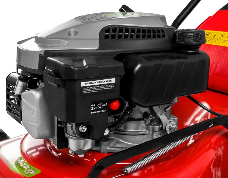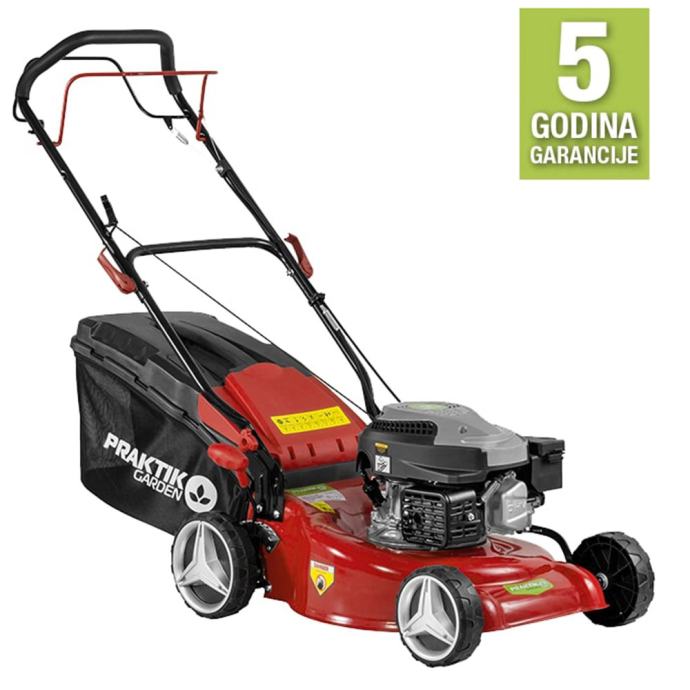 Rotaciona samohodna kosilica za sve manje travnjake. Benzinski četverotaktni motor ima optimalnu snagu da u svakom trenutku može isporučiti dovoljno snage za sva opterećenja. Lako paljenje pomoću startnog mehanizma kojeg možemo postaviti u dva položaja: prvi položaj kao kraća potezna špaga odmah na motoru ili drugi položaj kao duža potezna špaga kako bi nam ručica startnog mehanizma bila bliže glavnim ručkama. Zahvaljujući dobro osmišljenom dizajnu i nožu posebnog oblika, rotirajući nož generira snažan usis da bi se trava podigla prije rezanja, što osigurava čist rez. Visinu košnje je moguće centralno podesiti uz pomoć centralnog sustava za podešavanje visine u više položaja. Čvrsto metalno kućište osigurava dugu trajnost i veliku čvrstoću. Moguće je kosilicu podesiti vrlo jednostavno u jedan od moda rada: košnja sa skupljanjem trave u košaru ili košnja sa stražnjim izbacivanjem trave. Košara velike zapremine je izvedena u kombinaciji tekstila i PVC materijala. Ovaj model je opremljen priključkom na koji može biti spojeno standardno crijevo za vrt pomoću brze spojnice kako bi čišćenje nakon upotrebe bilo što jednostavnije i lakše.