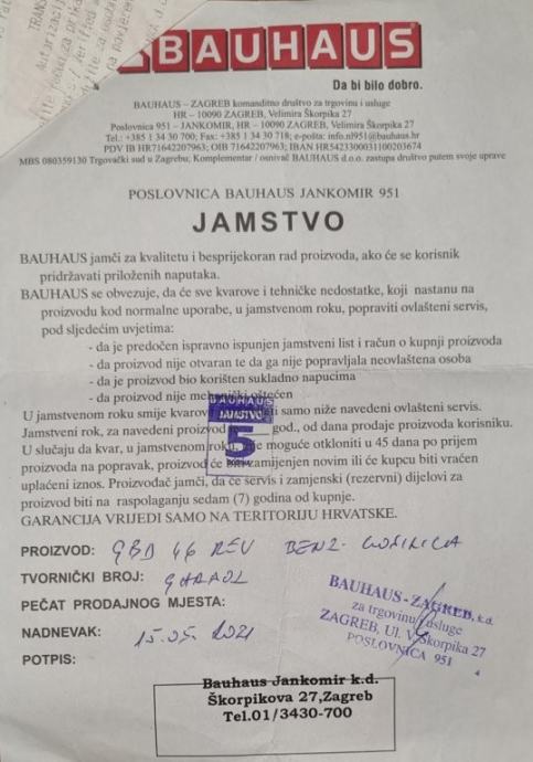 Garancija je 5 godina i vrijedi do 15.05.2026.