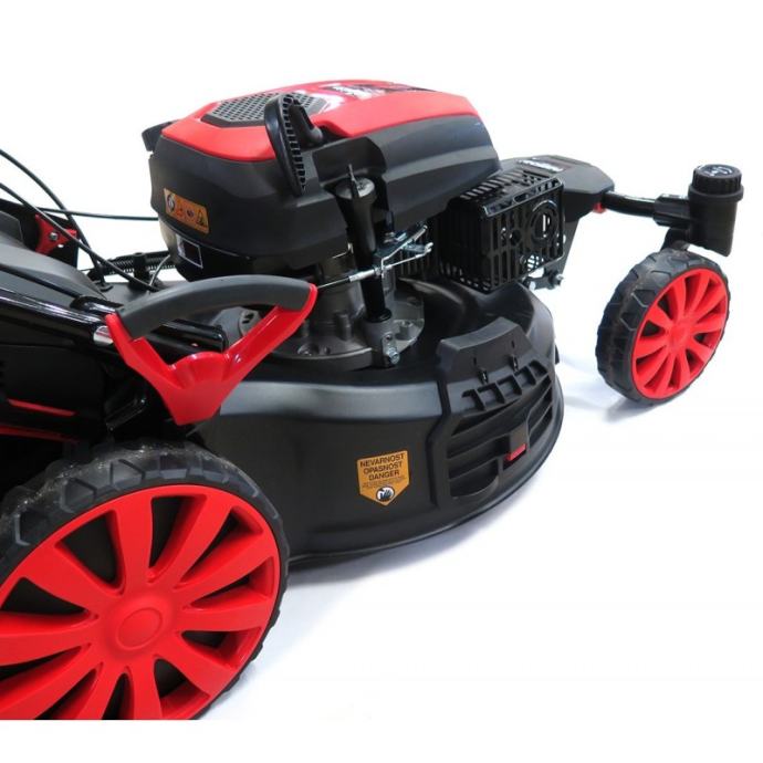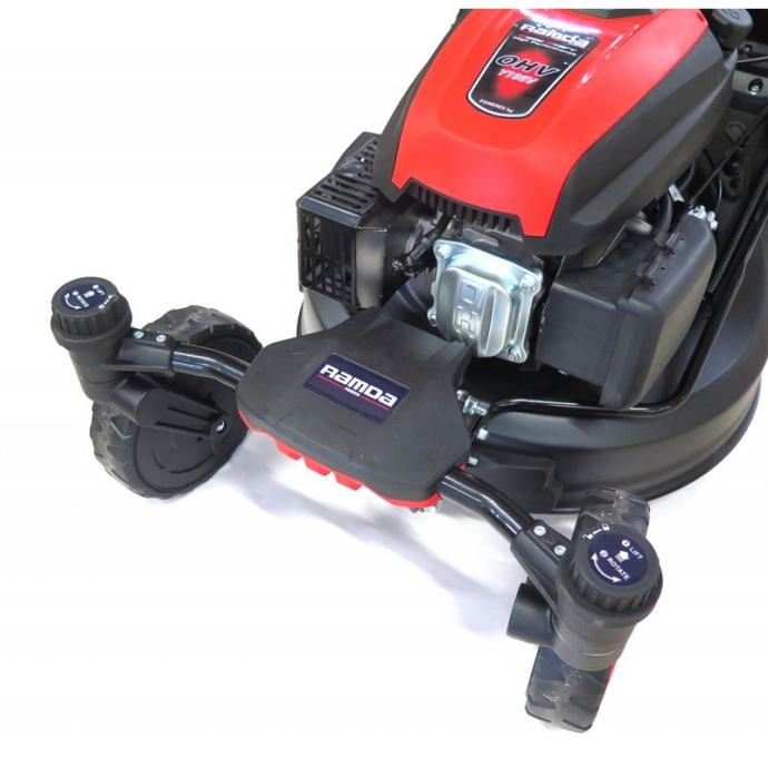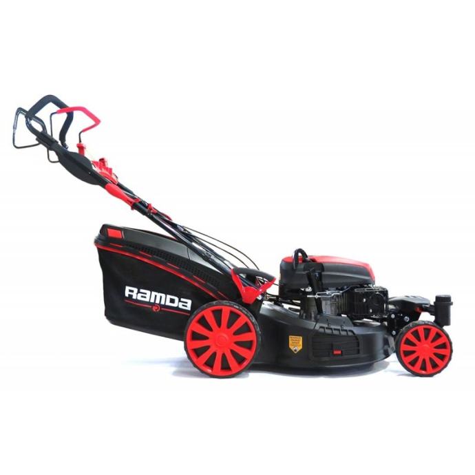 RAMDA TW51SHL-T vrtna kosilica s pogonom i sistemom 4u1 - motor: Ramda Y196V-OHV, 196ccm - širina košnje: 51cm - kučište: metalno - košara: 65L - podešavanje kotača: centralno 1x ručka, 6 razina, od 25-75mm - kotači s ležajima - kotači sprijeda 210, iza 280mm - vrsta košnje: 4u1 (košara, malčar, bočno bacanje) - samohodni, pogon na stražnje kotače (General Transmission pogon) - opcija: zamjenski nož (TX G5510000000) - težina: 41kg - jamstvo: 24 mjeseca UPOZORENJE: Motor je bez ulja. Prije prvog starta obavezno ulijte ulje. Preporučujemo upotrijebu ulja SAE 30, kataloškog broja OL 0662.