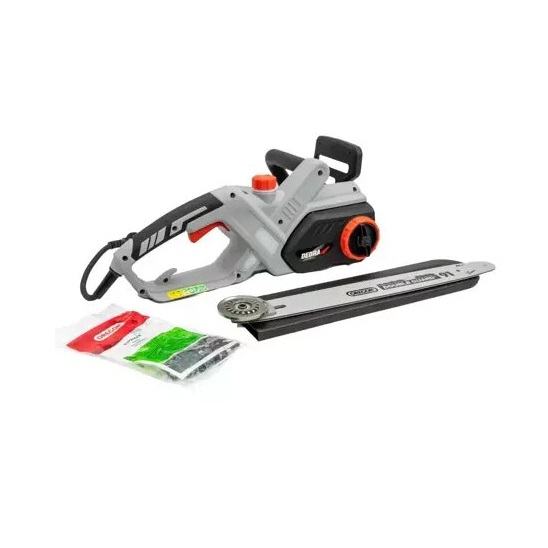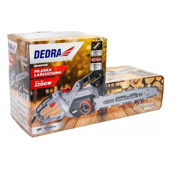 Električna lančana pila DED8702 je alat koji će naći svoju primjenu kod kuće, u vrtu ili na gradilištu. Duljina vodilice u ovom modelu je 40 cm. I vodilica i lanac dolaze od svjetski renomiranog proizvođača OREGON. Pila je opremljena sustavom koji omogućuje brzo i jednostavno podešavanje napetosti lanca bez upotrebe alata. Brzina lanca od 13 m/s omogućit će korisniku brz i učinkovit rez. Uređaj ima sigurnosni prekidač koji štiti od slučajnog aktiviranja. Pila je opremljena i automatskom kočnicom koja zaustavlja lanac i uređaj u slučaju udarca uređaja tijekom rezanja. Sustav zatezanja lanca bez alata