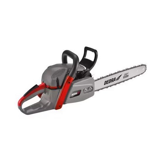 Benzinska motorna pila DED8713 je alat koji će naći svoju primjenu u kući, vrtu ili na gradilištu. Brzina lanca od 25 m/s omogućit će korisniku brz i učinkovit rez. Duljina vodilice u ovom modelu je 50 cm, a širina utora je 1,6 mm. Pilu pokreće motor s unutarnjim izgaranjem od 65 cm³. Pila je opremljena i automatskom kočnicom koja zaustavlja lanac i uređaj u slučaju udarca uređaja tijekom rezanja. Ručka pile jasno je odvojena od tijela gdje se nalazi motor - to se pretvara u smanjene vibracije koje se prenose izravno na ruke korisnika. Preporučeni pribor: vodilica DED8698-20P , DED8698-22P , DED8698-24P i lanac DED8698-20L , DED8698-22L , DED8698-24L . Karakteristike motorne pile DEDRA DED8713: