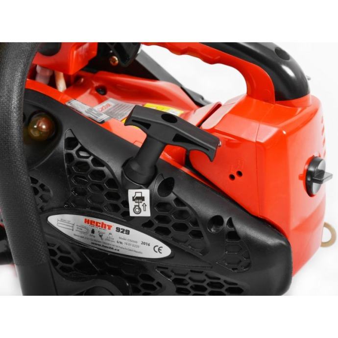 Osnovni podaci/osnovna izvedba: ergonomska ručka uz meki rukohvat , komande prilagođene za rad jednom rukom , ekstra lagana motorna pila : 2,9 kg , sigurnosni nosač sa kojim se može pričvrstiti na uže ili remen , visokokvalitetni uplinjač twrtke WALBRO , opremljena kvalitetnim-izdržljivim lancima tvrtke OREGON koji osigurava kvalitetan bezkompromisan rez , jednoručna motorna pila HECHT 929 udovoljava najvišim sigurnosnim standardima..