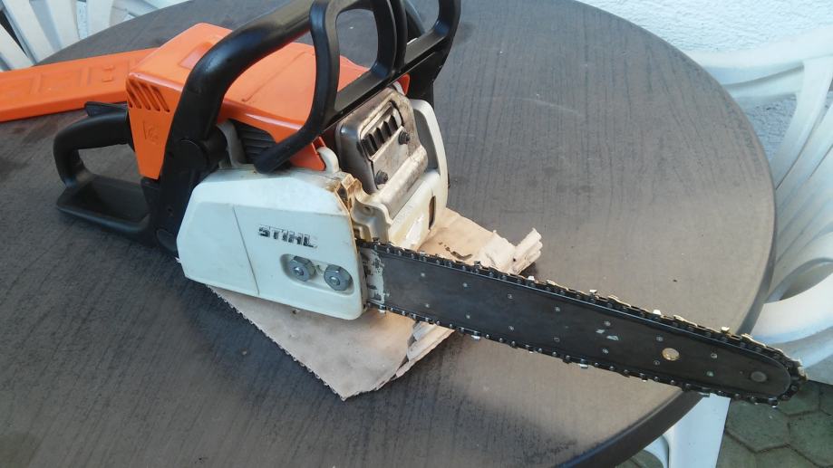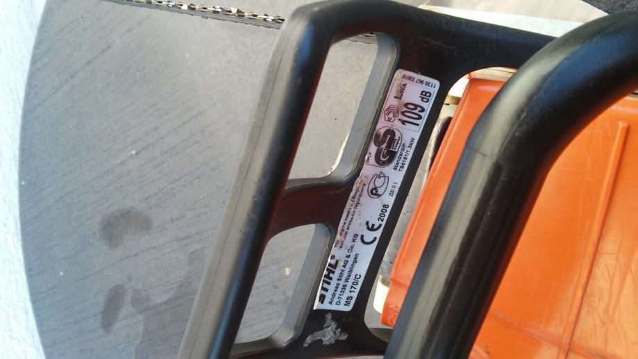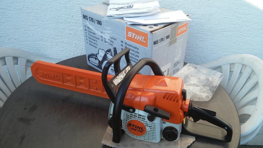 Prodaje se motorna pila Stihl MS170 proizvedena 2008.g. kupljena nova 2009. To je model bez katalizatora jačine 1.8KS i jača je od Novijih modela MS170D i 2mix(one su 1,6KS). Dužina rezne garniture je 30cm a težina oko 4 kg. Pila je potpuno ispravna, servisirana i očišćena te spremna za rad. Prodaje se iz usluge, cijena je SAMO 950 kn! Moguča je i zamjena al tad može biti nešto veća cijena i ovisi o vrijednosti robe koju nudite u zamjenu! Uz pilu ide orginalna kutija, navlaka vodilice, uputstvo i papiri! Može i moja doplata!