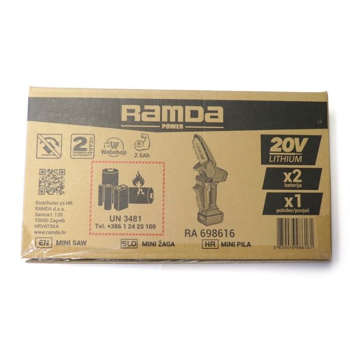 RAMDA Baterijska pila 20V, vodilica 13cm, 2x baterija 2.5Ah + punjač