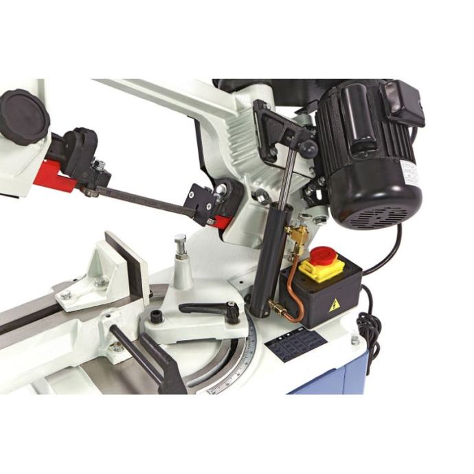 Posebne karakteristikeuz tri različite brzine, možete odabrati pravu brzinu za svaki materijal s tračnom pilom za metal HBM 128.tračna pila za metal HBM 128 ima tih i snažan motor snage 375 W.stroj dolazi s pomičnom stezaljkom za materijal, što stroj čini jednostavnim za korištenje i omogućuje vrlo točan rad.stroj ima hidraulički cilindar za jednostavno spuštanje ili zaustavljanje pokreta ruke.Opisuz naprednu tračnu pilu za metal 128, obrada čelika, željeza, aluminija i mnogih drugih tvrdih i debelih materijala posebno je jednostavna. Uređaj je jednostavan za sastavljanje i podešavanje te je prikladan kako za profesionalnu upotrebu tako i za fanatične hobiste. Tračna pila za metal ima tri različite brzine rezanja i kut rezanja od 45 i 90 stupnjeva. Osim toga, pila ima praktičnu bazu s kotačima. To vam omogućuje jednostavno postavljanje uređaja na željeno mjesto.tračna pila za metal HBM 128 idealna je za hobi, radionicu i građevinarstvo te je korisna za mnoge poslove. Tračna pila za metal može se koristiti za brzo piljenje, kao i za vrlo precizne rezove. Zahvaljujući robusnoj konstrukciji stroja i mnogim korisnim značajkama, lako možete napraviti željeni ravni rez, a stroj mogu koristiti i profesionalni majstori i fanatični hobisti.Tehnički opis: šasija s kotačimapodesiva stezaljka za materijalgradacija do 60 stupnjevaautomatski izlaztihi elektromotorhidraulički cilindar za spuštanjezaustavljanje materijalapomična stezaljka za materijal1 traka za pilu 1638 mm. (14 zuba, broj dijela 01198)dimenzije pile 1638 x 13 x 0,65 mm.brzine rezanja 20 - 29 - 51 M/min.snaga motora 375 Watt / 0,5 KS.napon 230Vdimenzije pakiranja Kutija 1: 940 x 450 x 540 mm.kutija 2: 650 x 445 x 255 mm.radna visina ± 68 cmmax. stezni škripac ± 16 cmtežina 85 kgkapacitet pile 90 stupnjeva.okrugli 128 mm.kvadrat 100 x 150 mm.kapacitet pile 45 stupnjevaokrugli 90 mm.kvadrat 90 x 75 mm.]]>