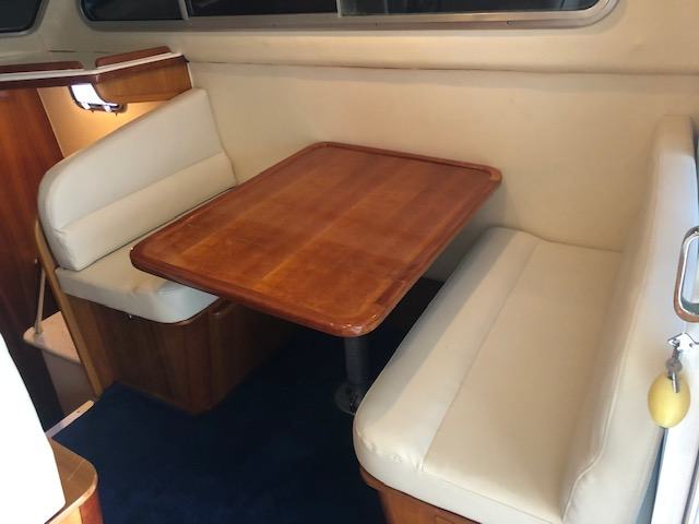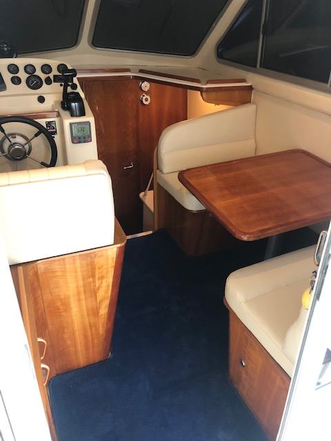 Vrlo komforna kabina sa stolom koji se spušta i pretvara u ležaj za dvije osobe, odvojena pramčana kabina sa ležajem za dvije osobe , duplo upravljačko mjesto sa sjedalom za dvije osobe, kompletna instrumentacija motora na fly.Plovilo ima sva nova pokrivala , novi inox bimini top , navlaka za fly, komplet navlaka za vjetrobran , intregrirana platforma sa ljestvama , intregriran pramčani most.