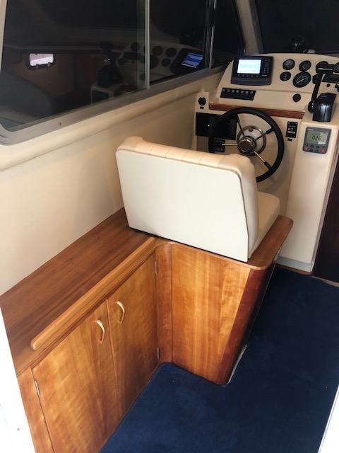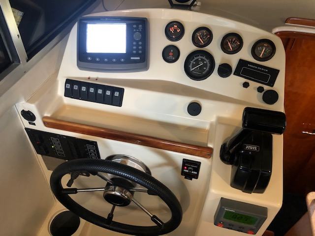 Kompletno opremljen do zadnjeg detalja, pramčani propeler, električno sidreno vitlo , autopilot sa hidrauličnim sistemom upravljanja , 7 inch gps u kabini , 11 inch gps na fly , radio stanica, radio sa zvučnicima, obalni priključak na 220 v sa punjačem baterija i grijačem vode, kuhalo, frižider, sudoper, zatvorena wc prostorija sa umivaonikom , tuš sa toplom vodom ,sistem pranja kokpista sa morskom vodom kod ribolova, wc sa direktnim ispustom.