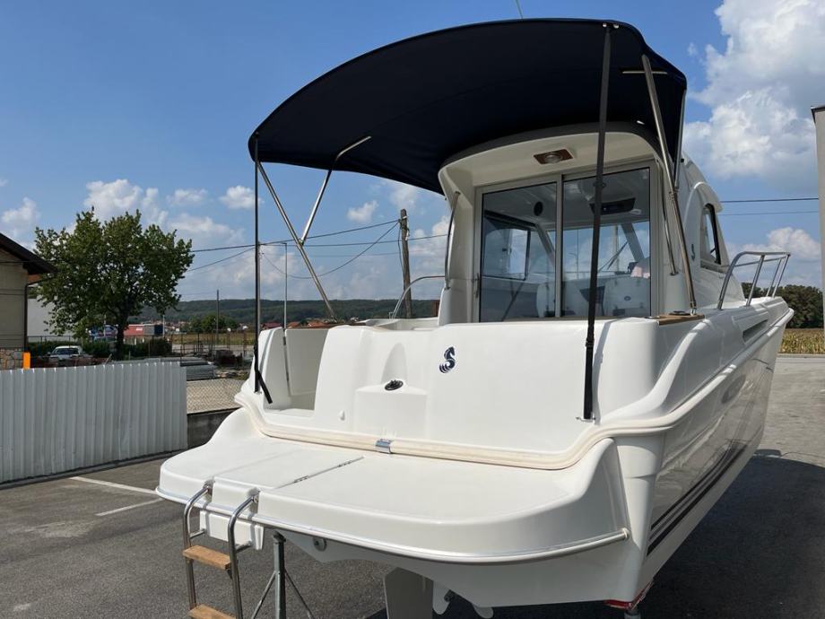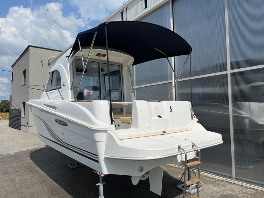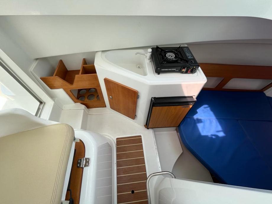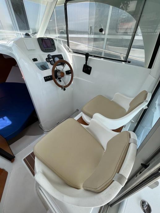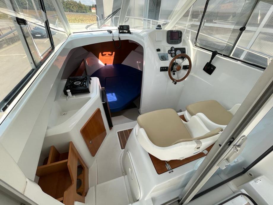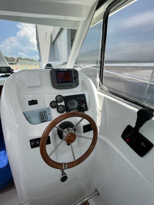 Prekrasna obiteljska brodica za dnevne izlete i kraća krstarenja , plovilo ima oznaku 6 ali je dužine 7,20 m , Vrhunska motorizcija yanmar 4 cyl 16 v 110 ks turbodiesel ,vrlo komforan i širok , velik kokpit salon sa stolom koji se pretvara u veliko sunčalište , prostrana i prozračna kormilarnica sa bočnim kliznim prozorima , krovni otvor , komforan ležaj za dvije osobe u pramcu sa pramčanim otvorom , zatvorena wc prostorija sa kemijskim wc, kuhinjski pult sa sudoperom , plinsko kuhalo , hladnjak 40 L sa ledenicom , električno sidreno vitlo , Raymarine A60 gps-fishfinder, radio stanica ,intregirana krmena platforma , pramčani most , obalni priključak na 220 v sa punjačem baterija Cristec , plovilo je u potpuno ispravnom stanju , vrlo malo korišteno i profesionalno održavano, upravo napravljeno kompletno održavanje , redovan servis , pranje , poliranje , antifouling i cinkovi , spreman za korištenje , 100 % sigurna kupnja bez rizika sa garancijom na motor . Isporuka na destinaciju kupca je moguća prema dogovoru.