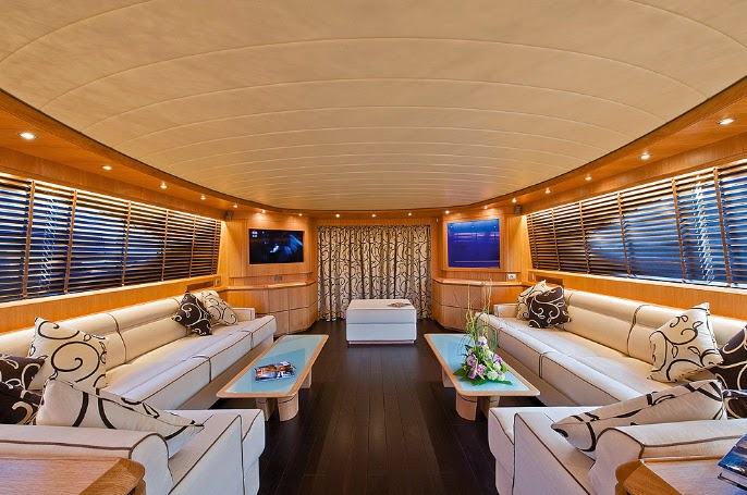 Description: Built in 2009 this 35 meter superyacht is fine luxury from top to bottom. The interior is stylish and comfortable. The main saloon has couches covered in leather upholstery lining the port and starboard side of the salon with coffee tables, and an adjoining dining area forward. Accommodation for up to twelve guests is in five luxurious cabins, which is unique for a yacht this size. The full width master stateroom is on the main deck and includes sofa, desk area and ensuite bathroom. On the lower deck there are 2 x VIPs also full width with sofa, desk area, wardrobe and his/ hers facilities (1 bath/ 1 shower); and 2 x twin cabins w/ensuites, both with a pullman.