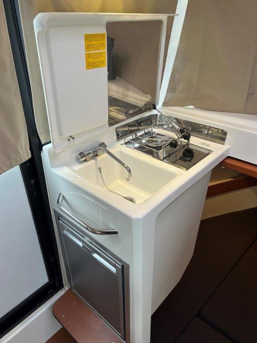 Vrhunski ribarski brod koji ima svu komociju klasičnog cruisera, 4 komforna ležaja, zatvorena wc prostorija sa tušem i umivaonikom, wc sa fekalnim tankom i pumpom za pražnjenje, kuhinja sa plinskim kuhalom, sudoper, waeco hladnjak.