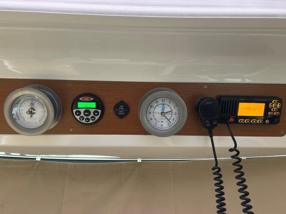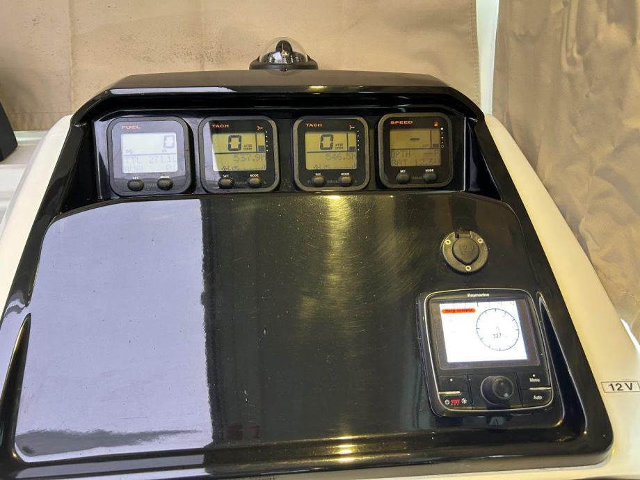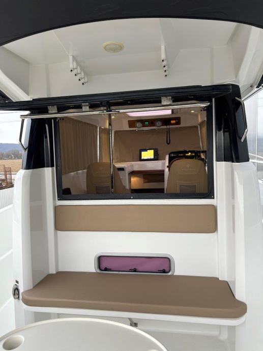 Kompletno opremljen sa svim dostupnim opcijama, pramčani propeler, električno sidreno vitlo, Lenco tim krilca, Raymarine autopilot, Humminbird 1197 C Gps-fishing system, stereo system, radio stanica, unutrašnje zavjese 360, krmena kabina sa dva komforna ležaja, bočna klizna vrata sa obje strane kabine, potpuno nova tenda za kokpit sa opcijom kompletnog zatvaranja i sjenila, vanjski salon sa bočnom sklopivom klupom i kliznom krmenom klupom pretvorivo u veliko sunčalište, bazen za živu ješku, sistem pranja kokpita sa morskom vodom, tuš u kokpitu, krmene platforme sa tikovinom, obalni priključak 220 v sa punjačem baterija i grijačem vode, ( topla voda u tuš kabini ). Nosači za sup na krovu kormilarnice, zadnje staklo u kokpitu podizno, ambijentalno osvjetljenje kokpita, kompletna led rasvjeta u kabini.