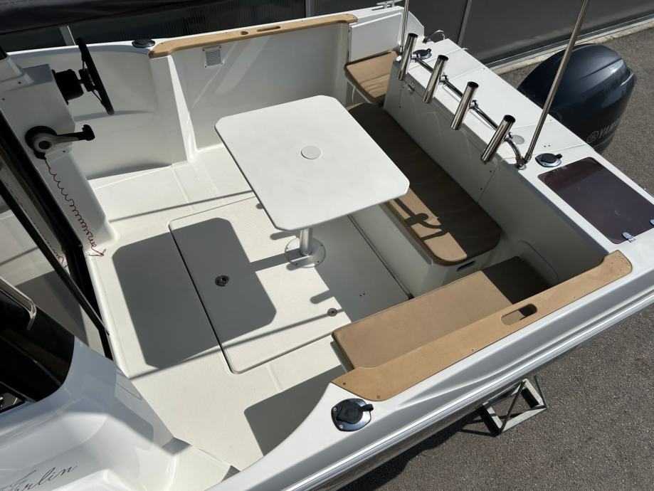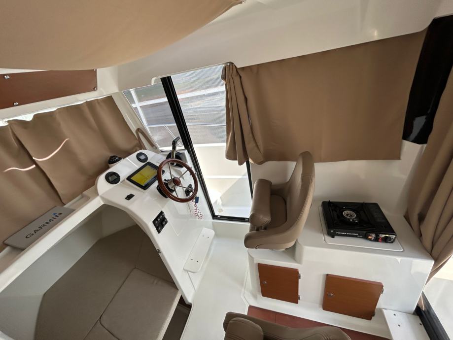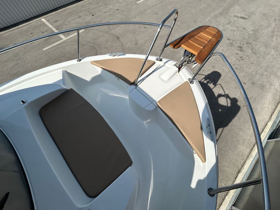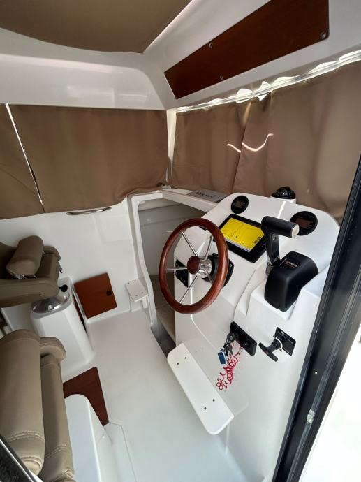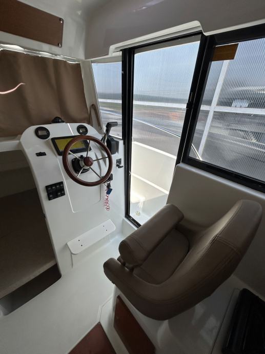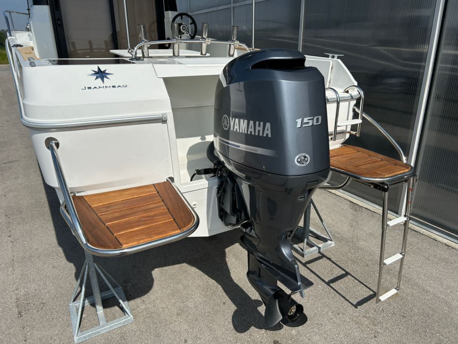 Plovilo u stanju novog ! doslovno bez tragova korištenja , samo 487 sati , kompletno opremljen za sportski ribolov i dnevne izlete sa dvije upravljačke pozicije, paket premiere ( klizni prozor u kormilarnici, klizni bočni prozor lijevo ,dupli brisači sa sistemom pranja) paket fishing ( sistem pranja kokpit-a morskom vodom , bazen za živu ješku , držači ribičkih štapova ) , električno sidreno vitlo ,novi pramčani most ,nove krmene platforme, nova tenda za kokpit, Garmin 9 inch gps plotter sa sondom kroz trup, bočna klizna vrata , vanjski kokpit salon sa sklopivom bočnom klupom. Na plovilu je upravo obavljeno redovno održavanje , kompletno poliran, novi antifouling, redovan servis motora , potpuno spreman za korištenje. Plovilo se nalazi u našem prodajnom salonu u Zaprešić-u , isporuka na destinaciju kupca je moguća , sigurna kupnja sa garancijom i stručnom asistencijom sa strane našeg ovlaštenog Yamaha servisa i ovlaštenog Jeanneau dealer-a.