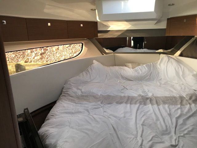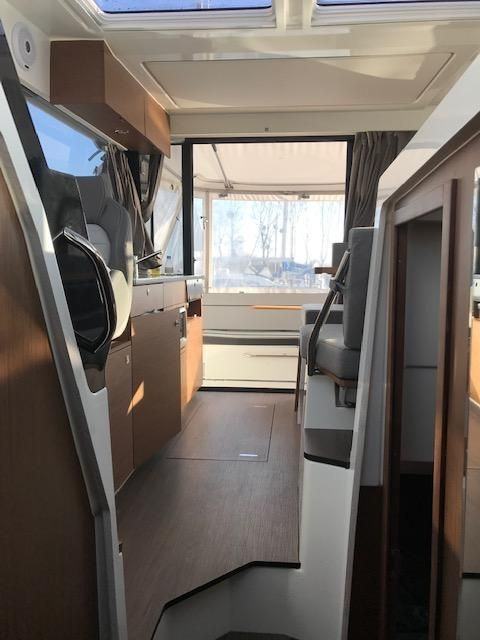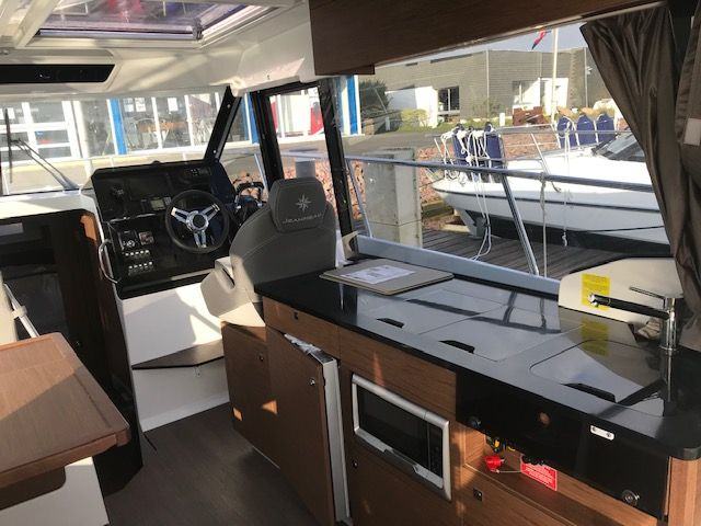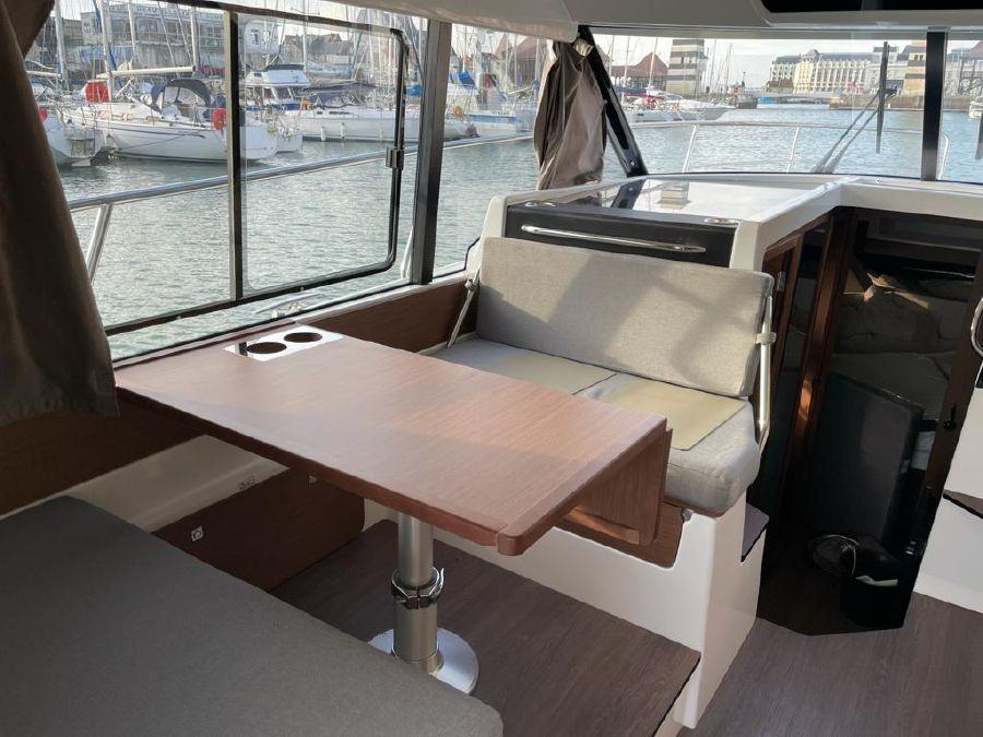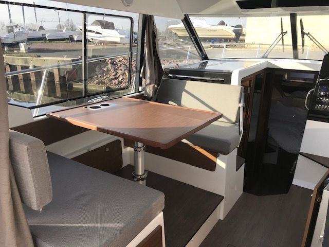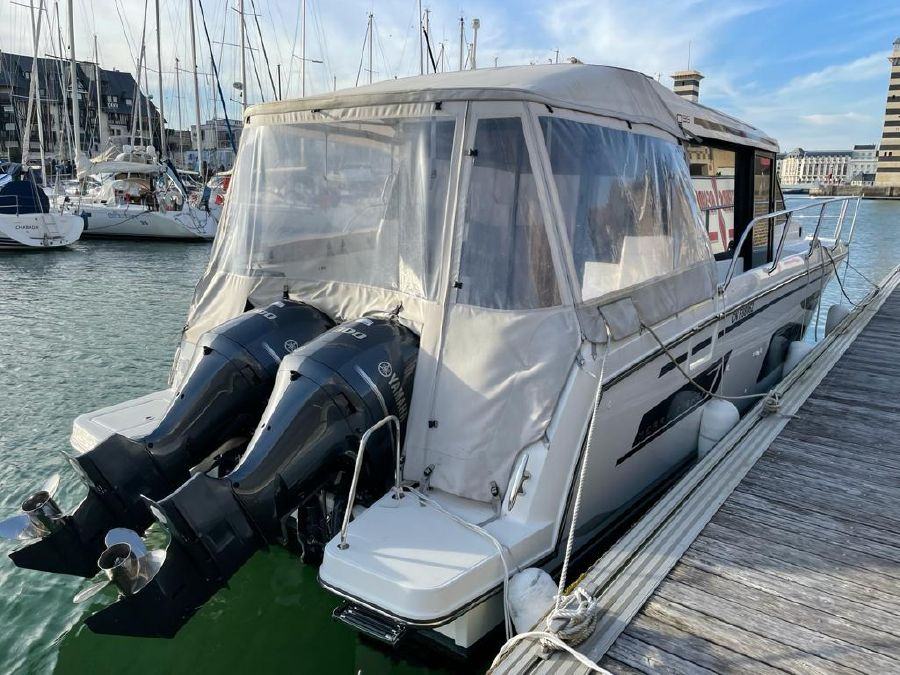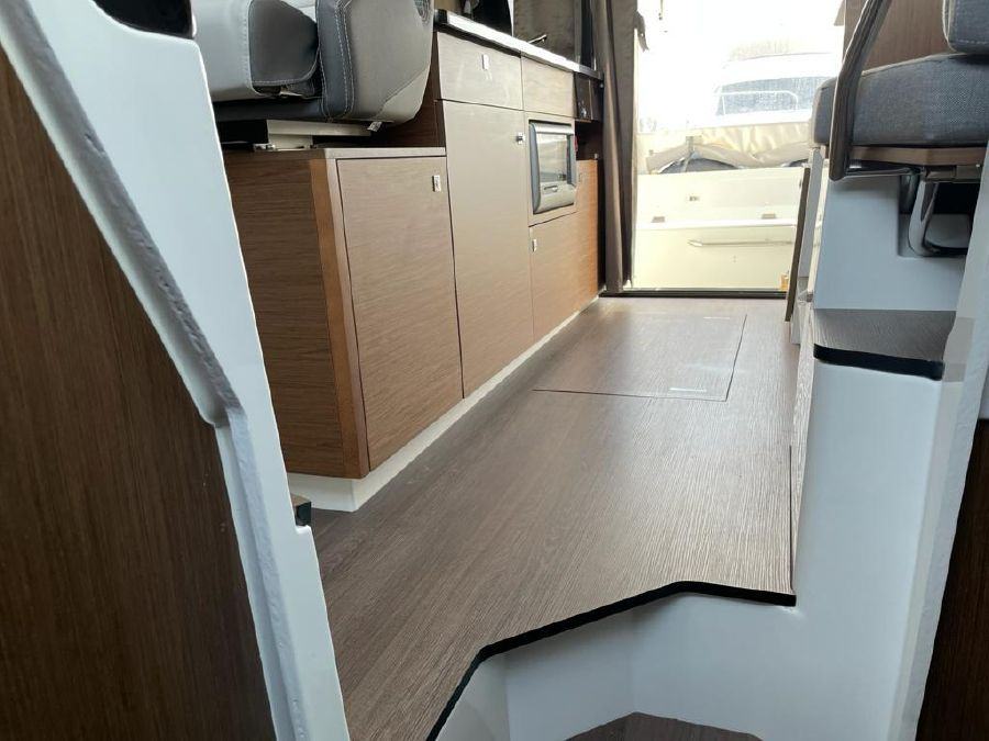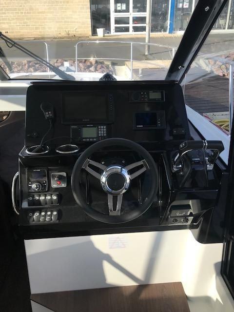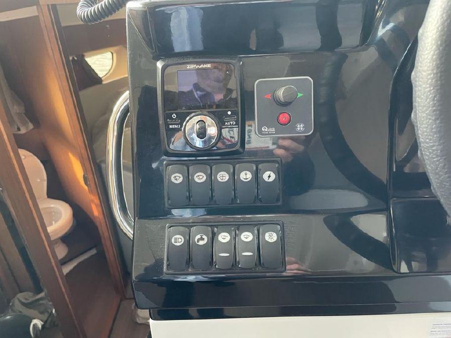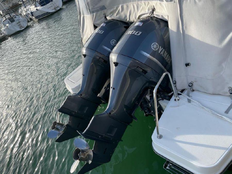 Merry Fisher 1095 from 2019 YAMAHA 300hp BETU outboard (about 90h) hydraulic control, hydraulic steering EQUIPMENT Electric windlass, bow thruster, Zipwake automatic flaps, Cockpit shower (cold and hot water), Interior ambient lighting to leds, Led lighting on the cockpit floor, 220v dock line + charger + socket, 220 V water heater, Interior curtains, Cross mooring cleats, Electric freshwater toilet, Direct freshwater connection at the dock, Control of windlass in the cockpit, Garmin Echomap Plus 92SV, Fusion player RA70N + bluetooth, VHF RT550 AIS, Cockpit cap and rear closure, High storage in the forward cabin, Teak cockpit table, Ladder for cockpit locker, 2 rod holders fishing + bow thruster, Complement for double berth in the saloon,High storage units in the kitchen, 2 electric heaters 220 V, Mooring kit and mooring kit