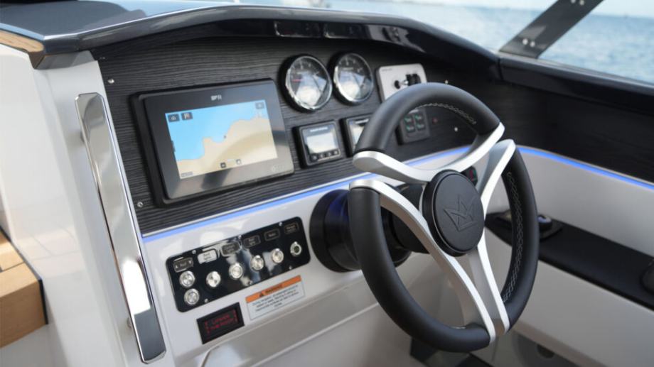 Prednja konzola, remek-djelo dizajna, dočarava luksuz kabrioleta. Vrhunski materijali, intuitivno postavljeni instrumenti i sofisticirana rasvjeta povećavaju privlačnost plovila.