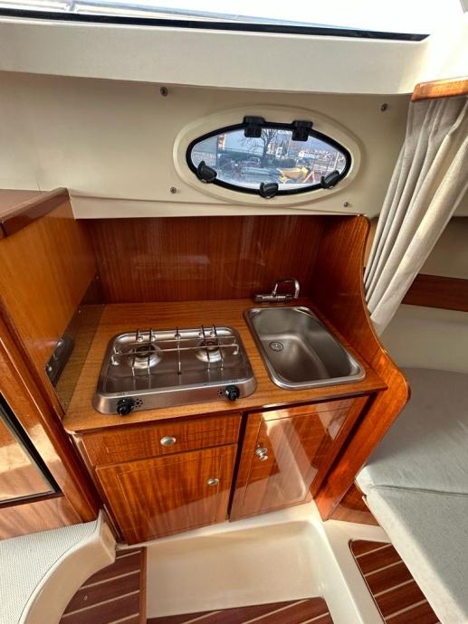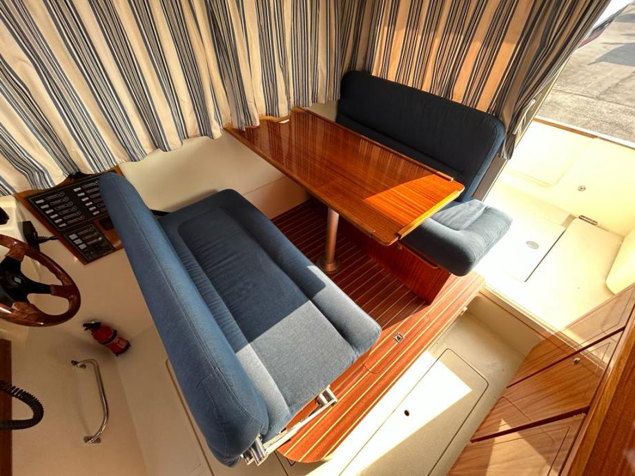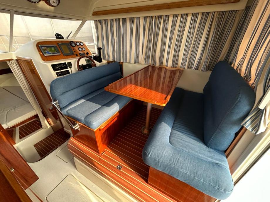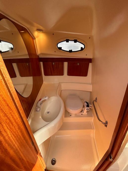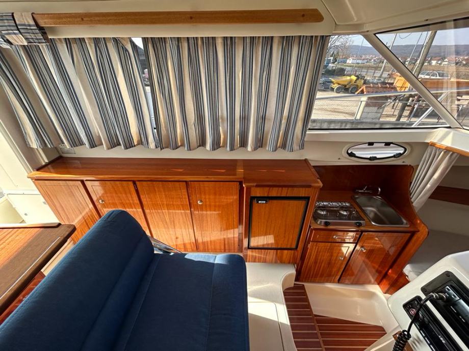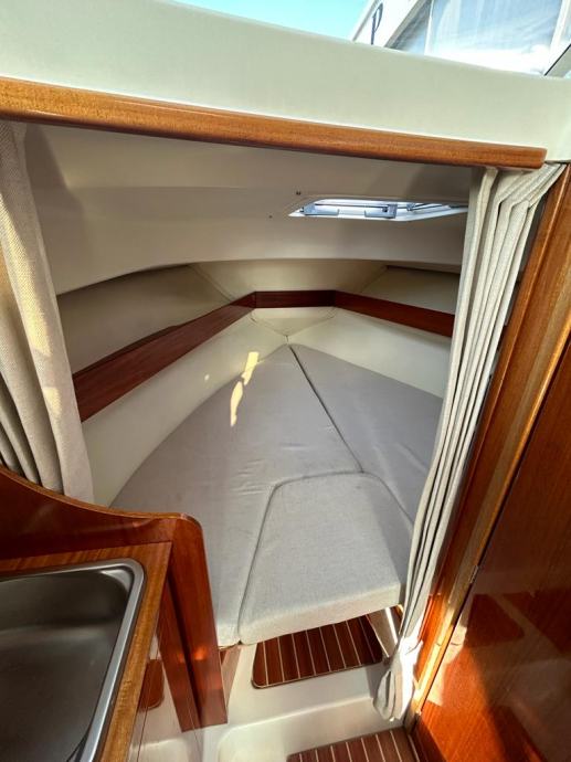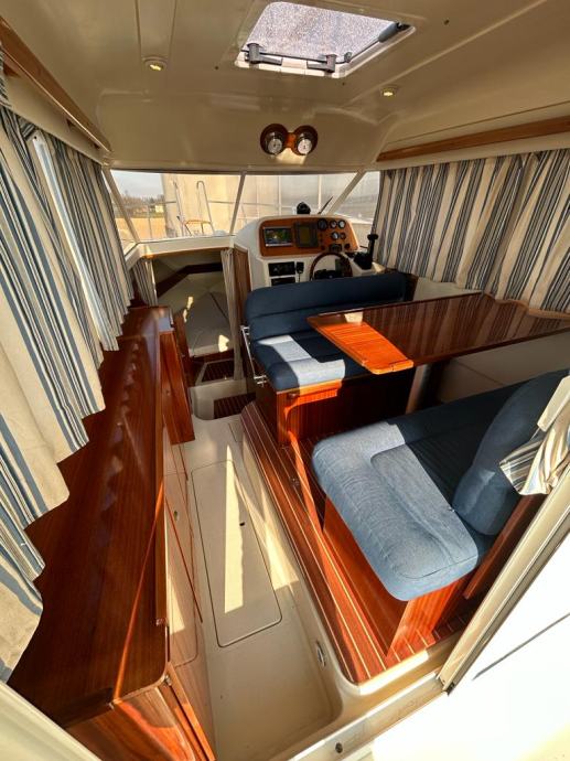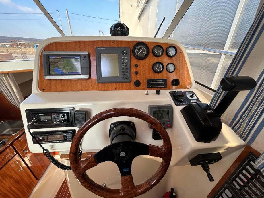 Brod je opremljen do zadnjeg detalja , pramčani propeler, novo električno sidreno vitlo lewmar ,Furuno radar,Garmin Gps/fishfinder combo, radio stanica, radio sa zvučnicima, Autopilot, Bennet hidraulični flapsovi, hidrauličan sistem upravljanja ,automatske kaljužne pumpe sa alarmom, protupožarni sistem u strojarnici , obalni priključak na 220 v sa punjačem baterija ,bojler tople vode sa sistemom grijanja na 220 v i preko motora ,kuhinja sa plinskim kuhalom 2 plamenika, sudoper, hladnjak , zatvorena wc prostorija sa umivaonikom i tušem sa toplom vodom, tuš u kokpitu ,pomične klupe/spremišta u kokpitu, novi pramčani most,tenda za zatvaranje kokpita, krovni otvor na krovu kormilarnice i kabine . Plovilo je kompletno polirano, očišćeno , servisrano i prekontrolirano , sve je ispravno i funkcionalno te spremno za korištenje, podvodni dio je ispjeskaren te premazan 2 x preimer 2 x atnifouling self polish , svi novi cinkovi. Obavljen servis motora. Plovilo je u izuzetno urednom stanju . Nalazi se u našem prodajnom salonu u Zaprešiću , isporuka na destinaciju kupca je moguća. Garancija 6 mjeseci od isporuke.