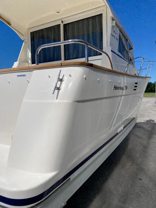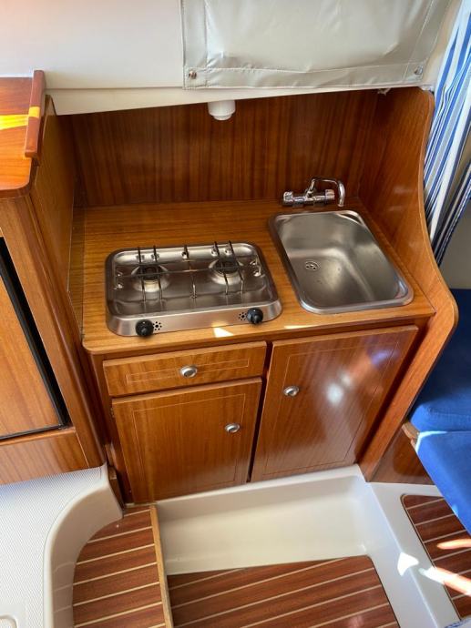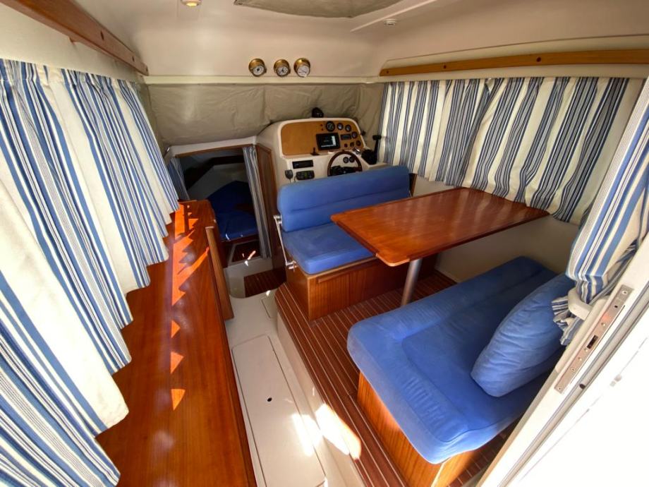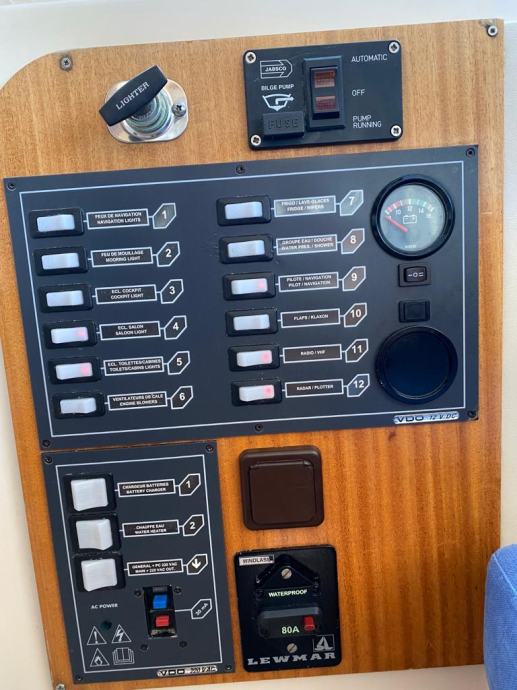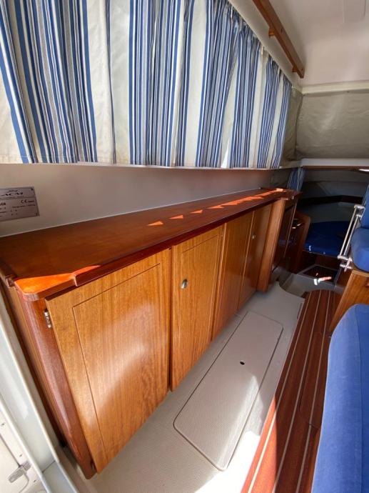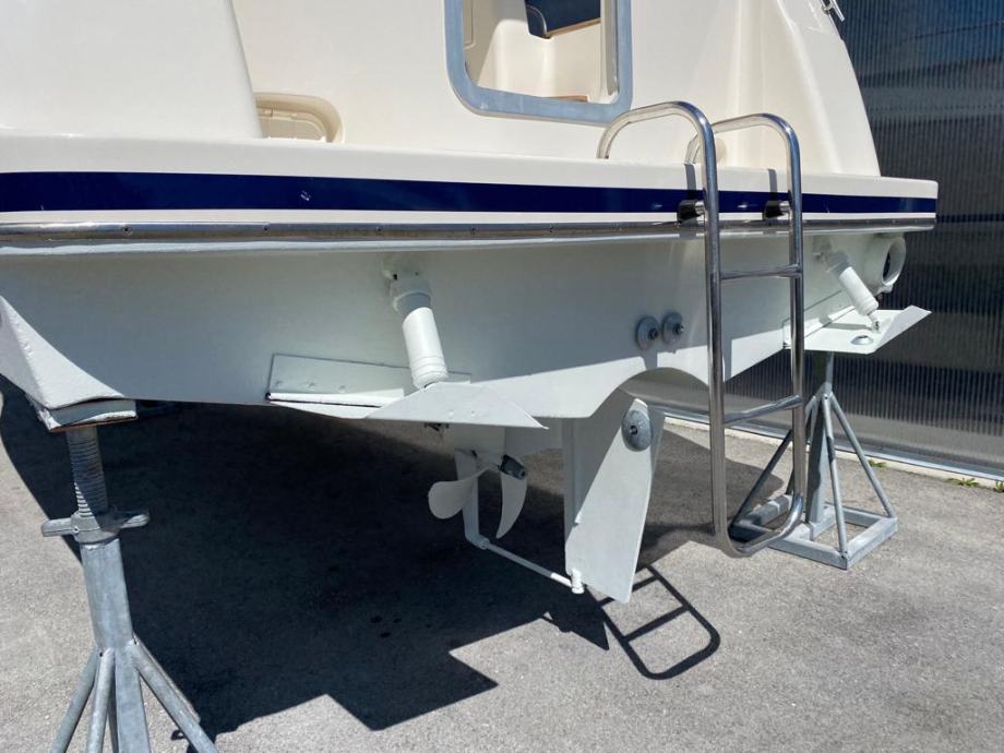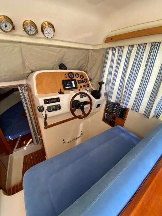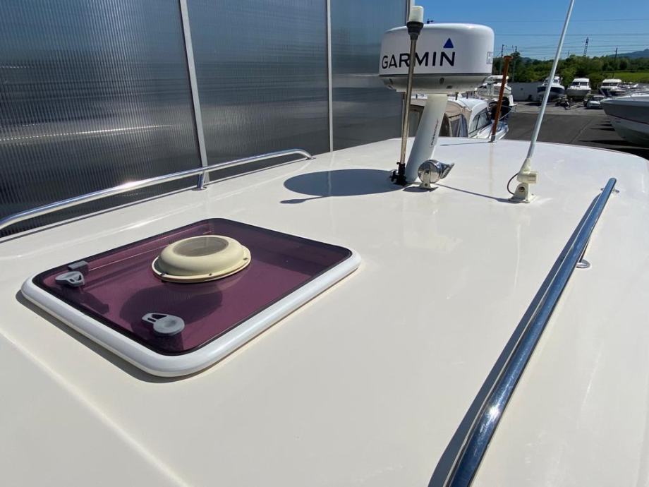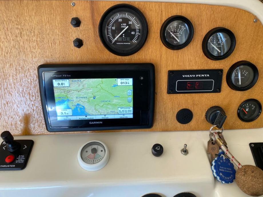 Brod je opremljen do zadnjeg detalja , pramčani propeler, električno sidreno vitlo , Garmin GPS Sonder + Radar, radio stanica, radio sa zvučnicima, indikator položaja kormila, Bennet hidraulični flapsovi, hidrauličan sistem upravljanja,automatske kaljužne pumpe sa alarmom, protupožarni sistem u strojarnici , obalni priključak na 220 v sa punjaćem baterija , bojler tople vode sa sistemom grijanja na 220 v i preko motora,kuhinja sa plinskim kuhalom 2 plamenika, sudoper, hladnjak , zatvorena wc prostorija sa umivaonikom i tušem , tuš u kokpitu , novi pramčani most, tenda za zatvaranje kokpita, krovni otvor na krovu kormilarnice i kabine . Plovilo je kompletno polirano, očišćeno , servisrano i prekontrolirano , sve je ispravno i funkcionalno te spremno za korištenje, svi novi cinkovi, redovan servis motora. Nalazi se u našem prodajnom salonu u Zaprešiću , isporuka na destinaciju kupca je moguća.