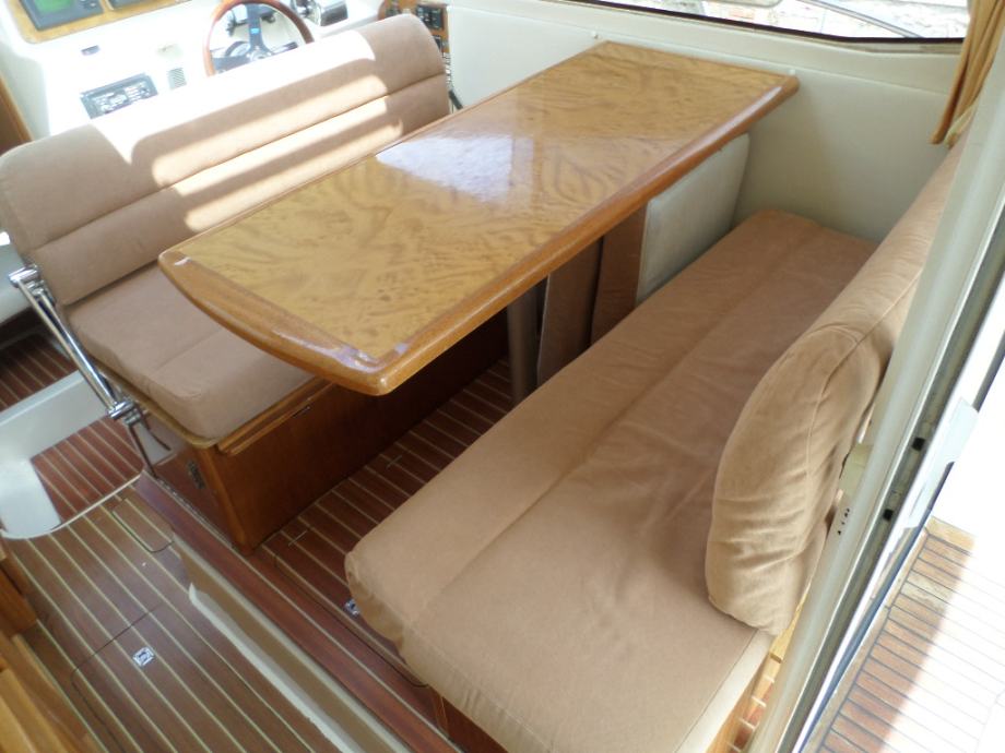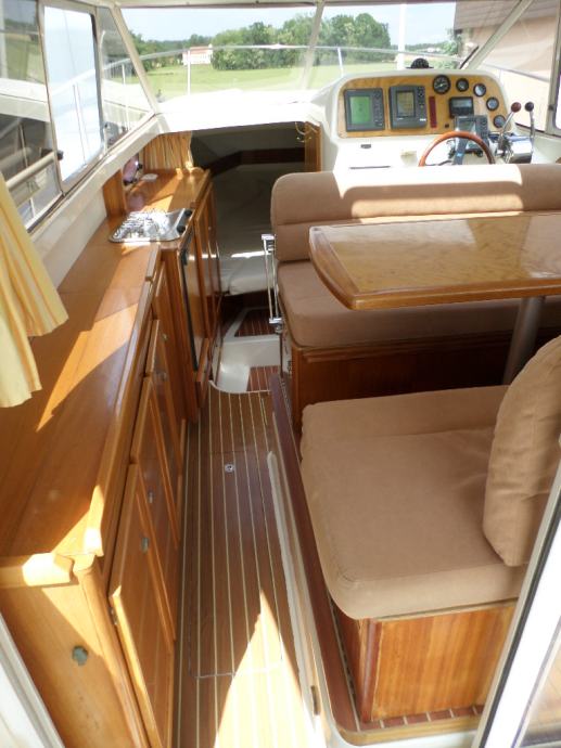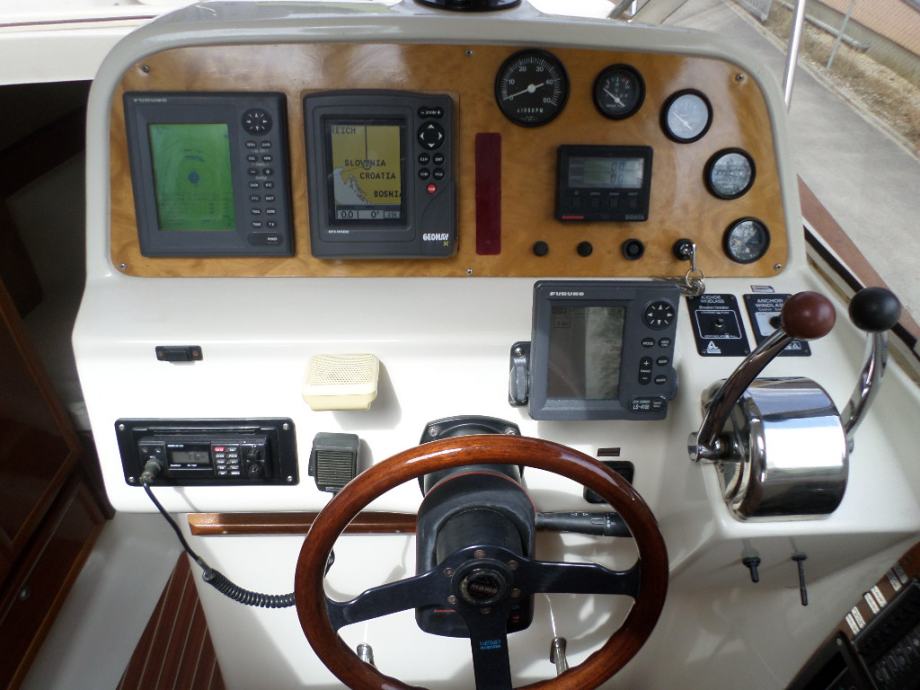 Savršen obiteljski brod , vrhunske kvalitete i dizajna, vrlo prostrana kabina sa 4 komforna ležaja, odvojena prednja kabina, salon koji se pretvara u ležaj, velika kuhinja sa puno pretinaca , plovilo je maksimalno opremljeno, GPS Geonav, RADAR Furuno, SOUNDER Furuno, AUTOHELM Raymarine, AUTOPILOT Raymarine, VHF, Električno sidreno vitlo, Pramčani propeler, plinsko kuhalo, sudoper , frižider, priključak na 220 volt, battery charger, morski wc, umivaonik, bojler tople vode, tuš u cockpitu sa hladnom i toplom vodom, panoramski krov, klizna bočna stakla, pramčano sunčalište, kompletno obožen tikovinom, interijer trešnja visoki sjaj, na plovilu je sve u dobrom stanju, održavan je i očuvan , sve je ispravno i spremno za korištenje, upravo ispoliran i novi antifouling i cinkovi, prodaje se sa 6 mjeseci garancije.Plovilo se može pogledat na našem lageru u Zaprešiću, ponedjlejak - petak od 08-16 sati , subotom od 08-13 sati