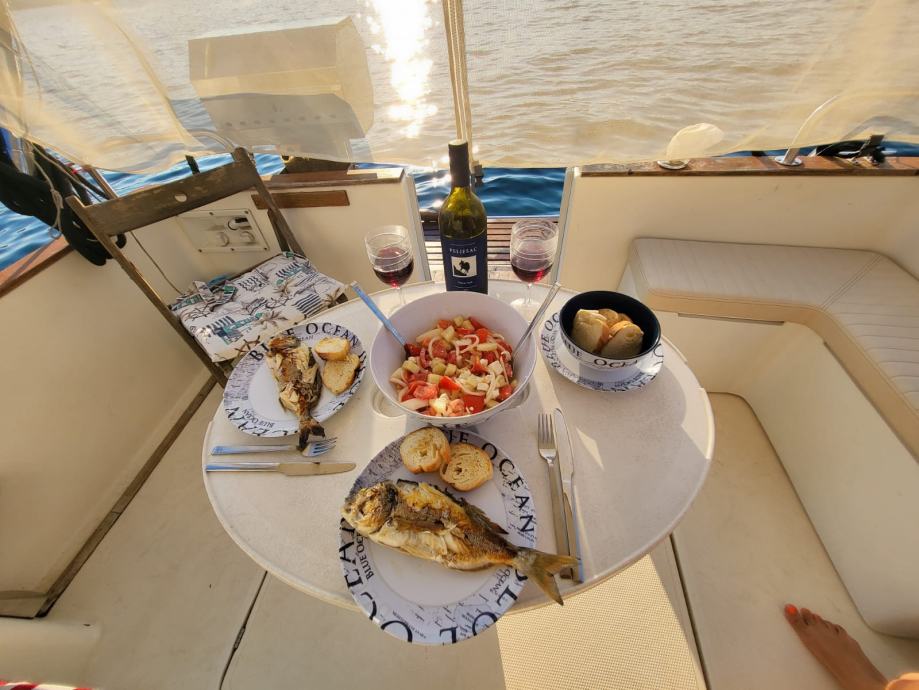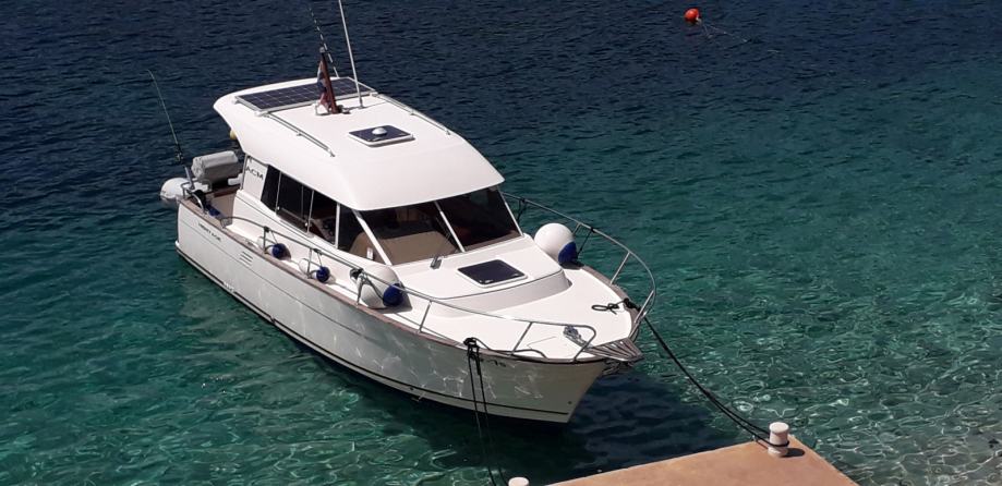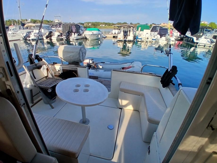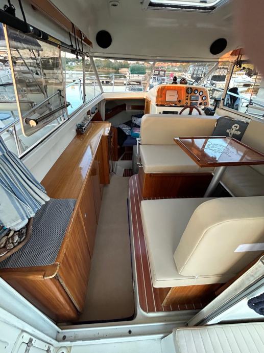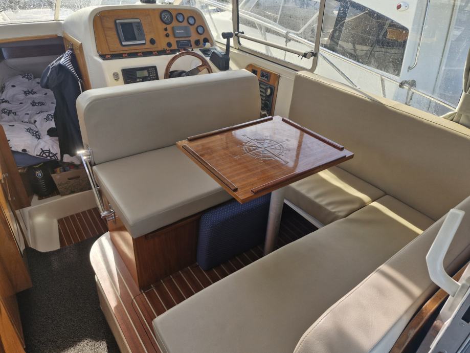 Prošle godine plovilo je novo tapecirano visokokvalitetnom nautičkom umjetnom kožom. U kokpitu su po mjeri izrađene udobne klupe za sjedenje, koje su izolirane i ujedno služe kao »ice box« za hlađenje pića. Zovite na 00386-40-395-660