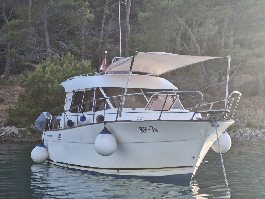 Prema dokumentima, duljina plovila iznosi 7,99 m, dok je ukupna duljina s dodacima 8,7 m. Od bogate dodatne opreme ističu se pramčani produžetak (špirun) i produžena platforma, solarni paneli snage 150 W, webasto diesel grijanje 2kw, radio s 4 zvučnika, aktivni subwoofer, hidraulični flapsi, 220 V priključak, tuš u kokpitu i u kupaonici, mreže protiv komaraca te sjenila na oba krovna prozora, Garmin navigacija, električno sidreno vitlo, fishfinder, hladna i topla voda, hladnjak sa zamrzivačem te roštilj na ugljen.