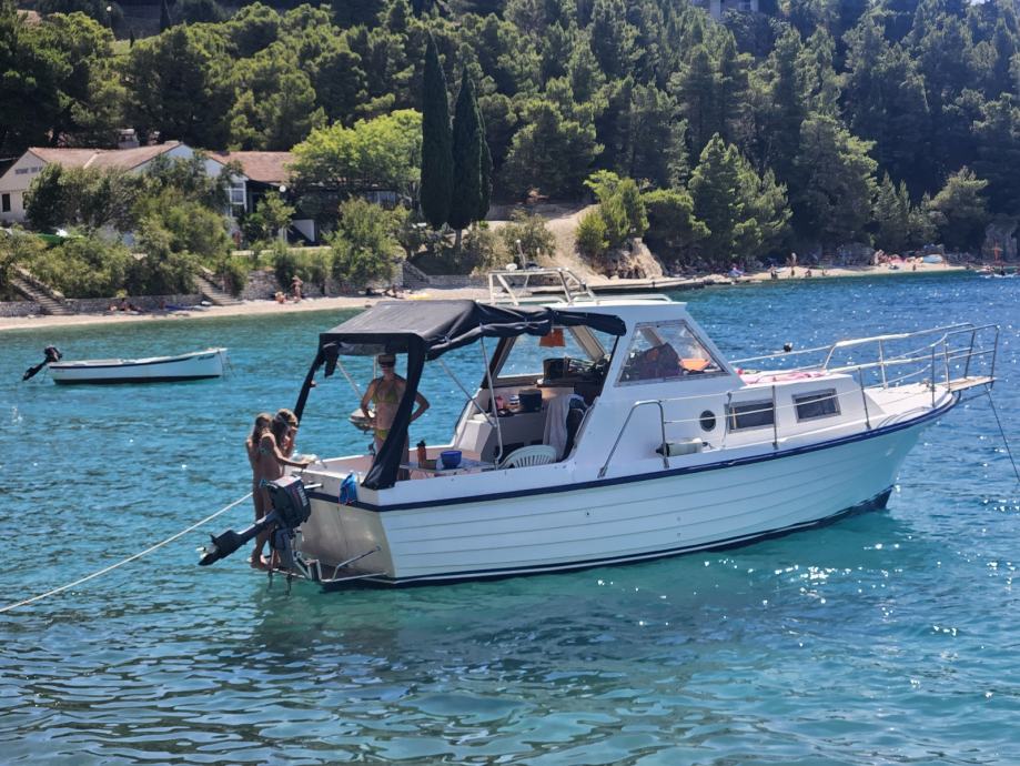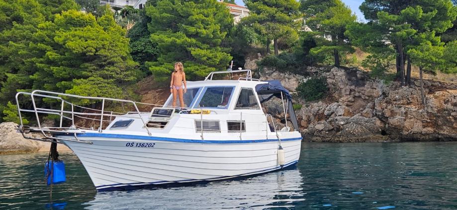 Komfortan obiteljski brod za dnevna krstarenja, proslu zimu iznutra i izvana renoviran. Dno bruseno i tretirano Hempel komponentama. Nema osmoze. Novi antifouling. Svi novi prozori, unutrasnjost na novo tapecirana, komplet novi kušini unutrasnji rađeni po mjeri, solarni panel 180w, nova startna i servisna baterija.