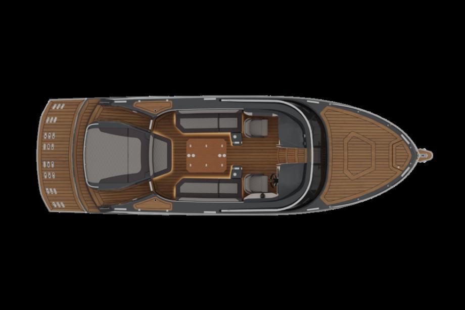 Prednja konzola je remek-djelo dizajna, podsjeća na luksuz kabrioleta. Vrhunski materijali, intuitivno postavljeni instrumenti i sofisticirana rasvjeta povećavaju privlačnost plovila.