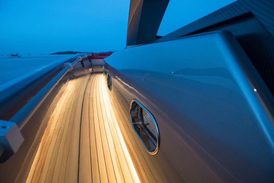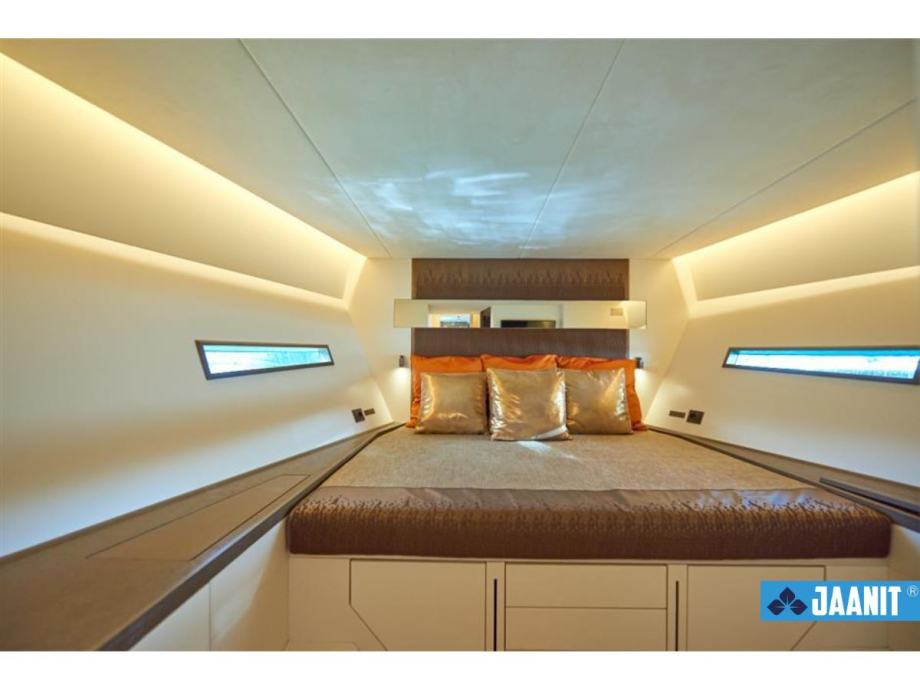 dizajniran da ponudi savršenu kombinaciju performansi, stabilnosti, udobnosti i elegancije, utjelovljenje je naše filozofije. Elegantne i agresivno sportske vanjske linije izražavaju skromnu estetiku, dok trup od stakloplastike i kompozita te smanjena buka i vibracije Volvo Penta IPS motori osiguravaju glatku vožnju.Tradicionalna tikovina naglašava ultra-moderni dizajn namještaja i opreme, koji slijedi načela forme i funkcionalnosti.