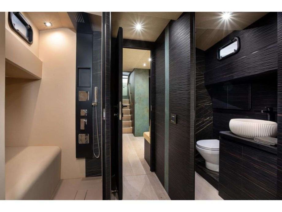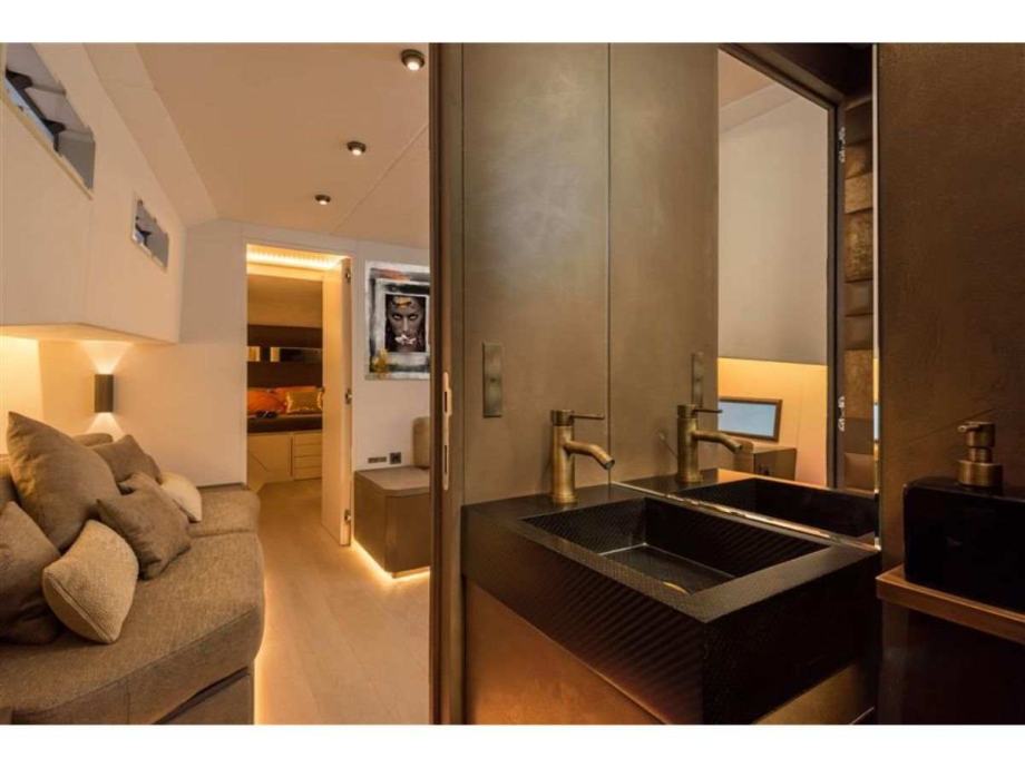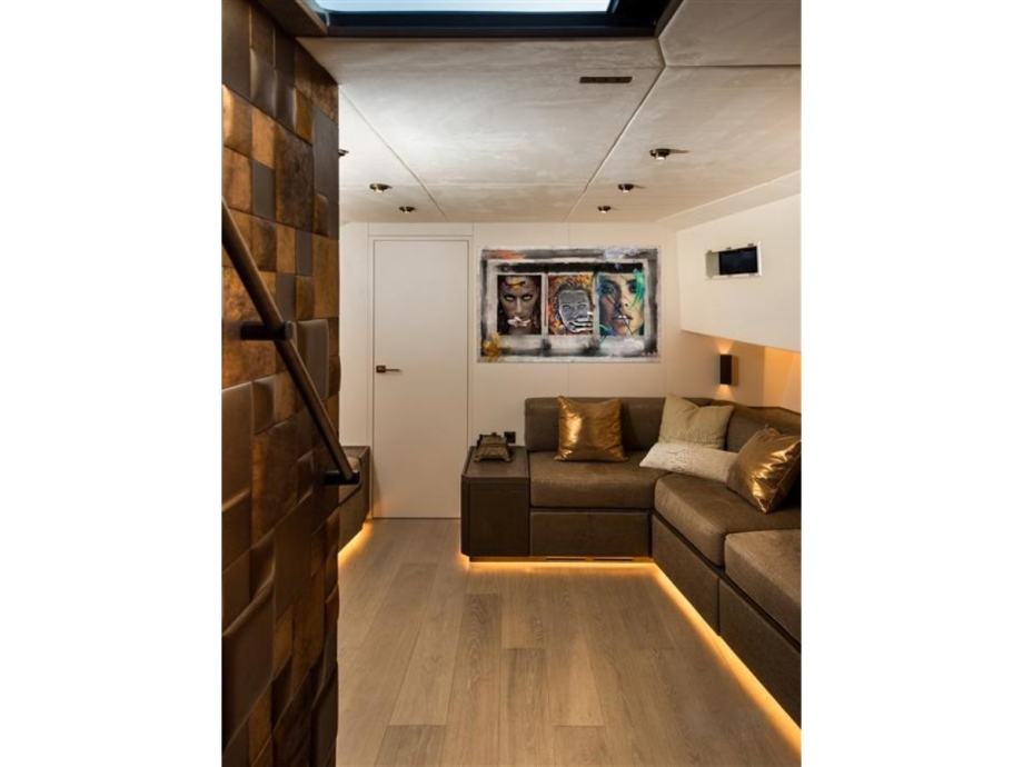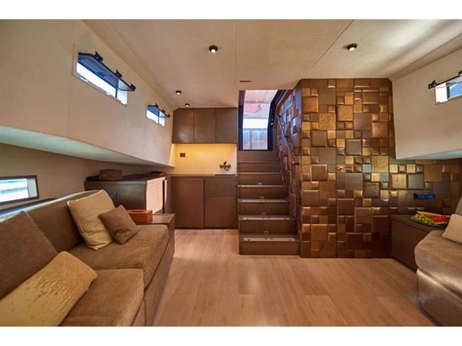 Luksuzno, funkcionalno i vrlo elegantno riječi su koje najbolje opisuju unutrašnjost APEX 60. Unutrašnjost, dizajnirana u suradnji s tvrtkom Egg and Dart Design Corporation iz Münchena, nastavlja elegantne linije vanjštine, istovremeno pružajući posljednji dodir udobnosti koji u potpunosti izražava jedinstveni karakter broda. Prostrani unutarnji raspored uključuje veliki i udoban salon s potpuno opremljenom kuhinjom, toaletom za goste, obiljem skladišnog prostora i lijepo uređenom vlasničkom kabinom s fleksibilnim sjedalima i prostorom za spavanje u vrlo privatnom prostoru. prostora. Vrhunac stila i funkcionalnosti je vlasnička kupaonica, opremljena zasebnim tušem i svime što vam je potrebno da se pripremite i vratite na obalu potpuno osvježeni i odjeveni za sljedeći dio dana ili noći. Završne obrade interijera uključuju najbolje prilagođene izvezene kožne stijenke i vrhunske hi-tech tkanine za sva sjedala. Posebno izrađena brončana metalna pasta za površine namještaja vrhunac je dizajna s odgovarajućim dodacima. Nježne brončane i krem boje u kombinaciji s prepoznatljivim konceptom osvjetljenja pružaju toplo i elegantno mjesto za opuštanje.
