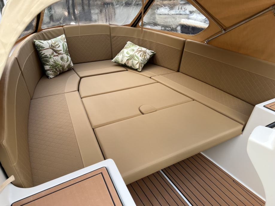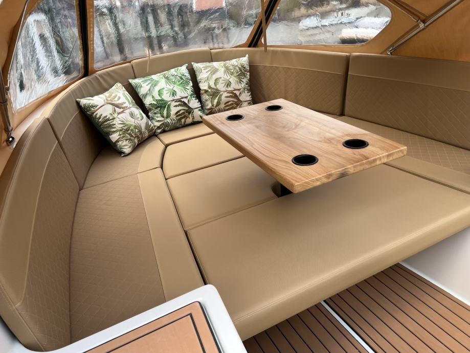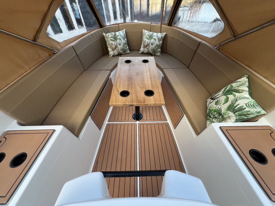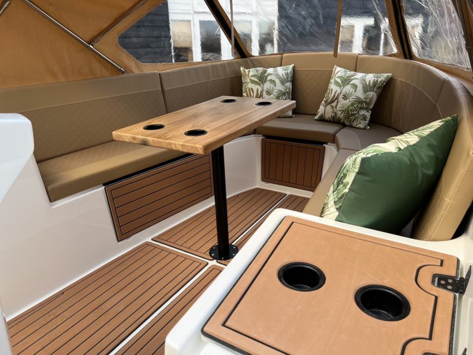 Ova se marka ističe od konkurencije svojim visokim standardima kvalitete. Sve je robusno i čvrsto. Model 615 ima modularnu klupu koja omogućuje jednostavnu transformaciju vozačke klupe u veliku sunčanu palubu. Model 615 ima okruglo sjedalo sprijeda koje se može podijeliti na tri dijela kako bi se stvorila prekrasna sunčana paluba. Ima dovoljno dubine za noćenja. U sunčanoj palubi također postoji ugrađeni prolaz s nogama stola kako biste pića mogli držati pri ruci. Ovaj model 615/T6 ima Flexiteak podove koji su predivno mekani pod nogama i ne zagrijavaju se. Također nude izvrsno prianjanje u mokrim uvjetima. S puno prostora za pohranu i sjedala, ovo je ultimativni obiteljski brod!