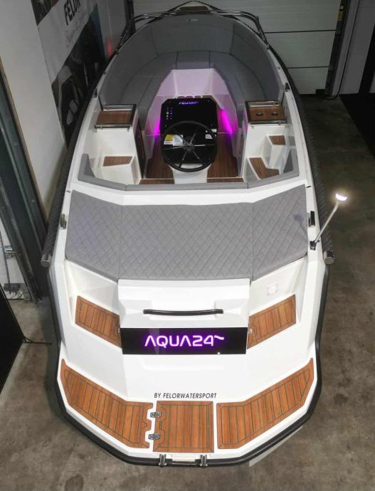 Najnoviji brod Aqua24 700 Tender. Bimini, Flexi tik pod, luksuzni set jastuka, s platformama, vozačkim sjedalom, kompletnom električnom instalacijom, stepenicama i radiom sa zvučnikom, hladnjakom…..