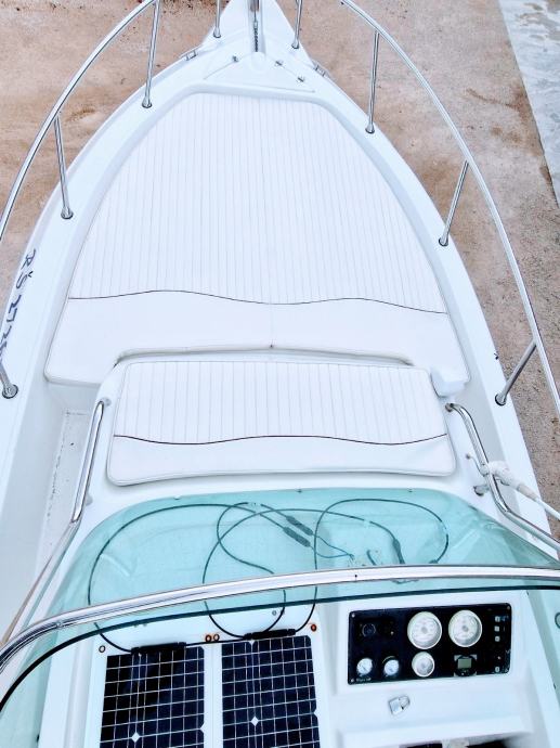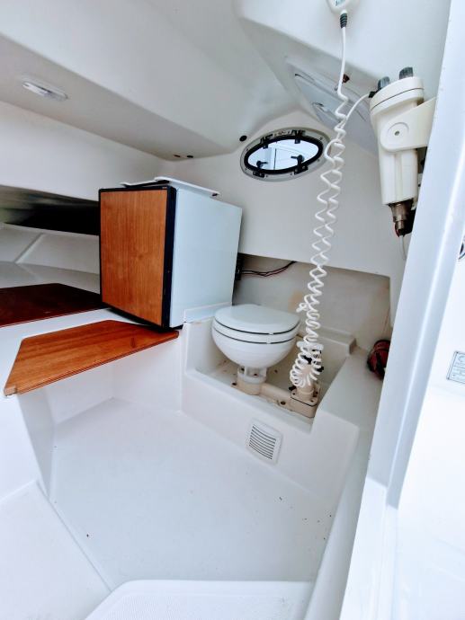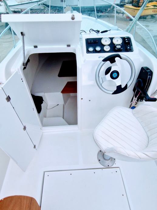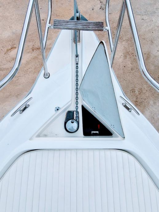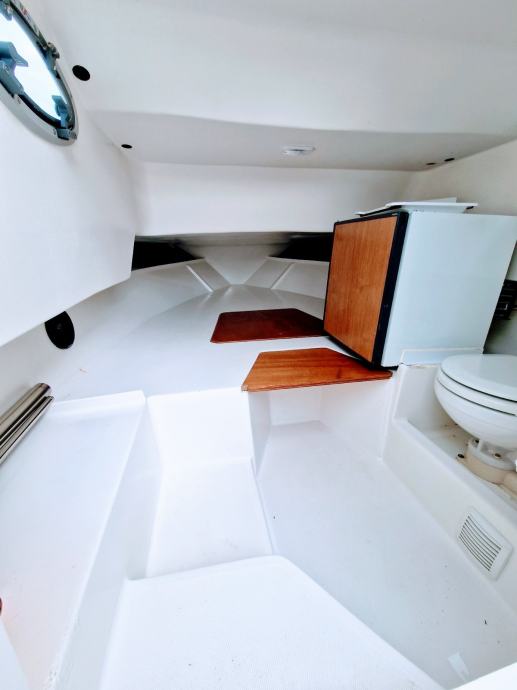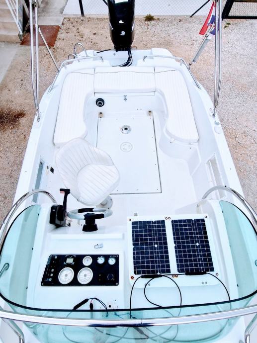 WA Sundeck, pramcano suncaliste, sidreni vinč,sredisnja konzola,radio sa zvucnicima,VHF stanica, skiperska stolica, solarni panel, krmena klupa +spuzve,stol,krmeno spremiste, krmena platforma +skale za izlaz iz vode, krmeni tus,bimini tenda, kabina-frizider,manualni wc, lezaj za 2 osobe. Rezer.goriva 100L, rezer.vode 60L, 2 baterije, 2 kaljuzne automatske pumpe.. nosivost 8 osoba..