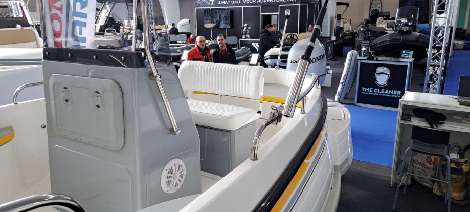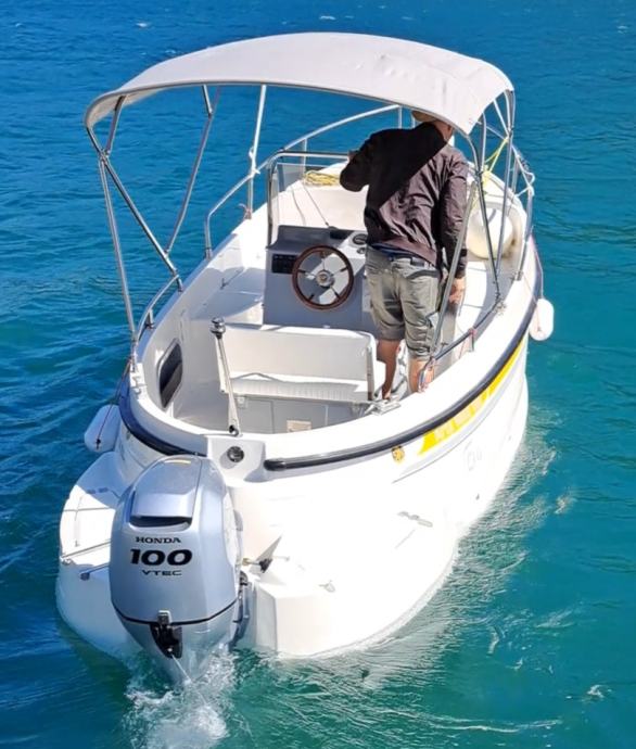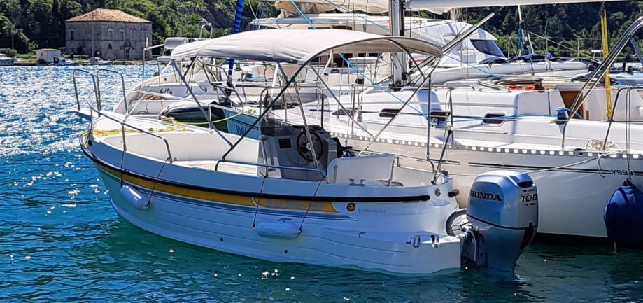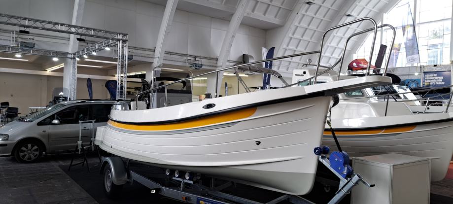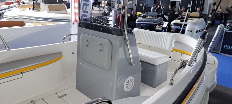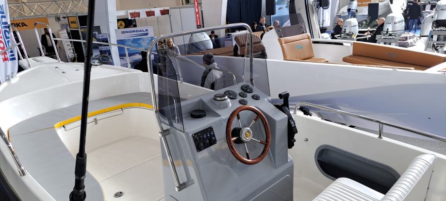 Centralna upravljačka konzola sa vjetrobranom i inox rukohvatom, bitve za privez, „U“ vezaljka na pramcu, sidrena pregrada sa poklopcem i odvodnjom, skiperska klupa, jastuci, pramčani izlaz, inox ograda, inox rukohvati, signalizacija i elektroinstalacija, krmena platforma za vanbrodski motor, rezervoar za benzin 67 lit.