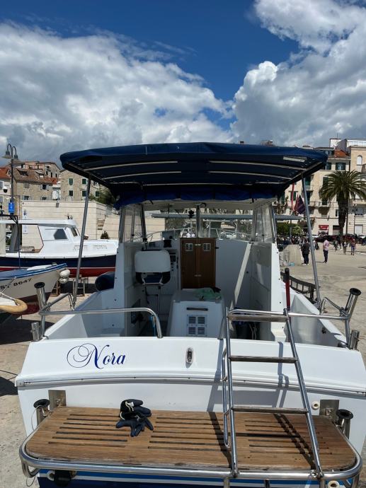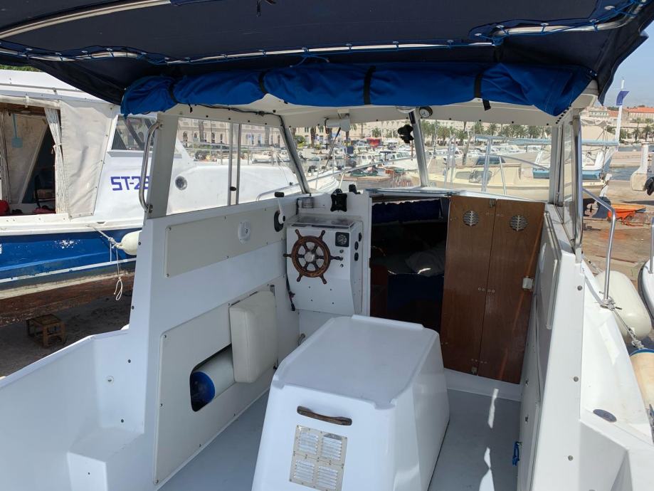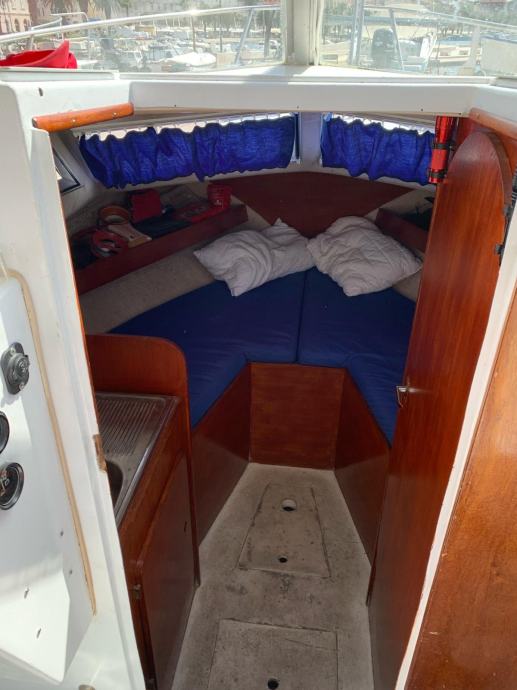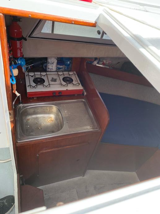 Ima solar od 110w sa victron punjacen i argofet razdjeljnikom. Lowrance elite 5 sonder sa sondon i hrvatskim kartama. Ima tus sa slatkom vodom, ima pumpu mora za pranje broda, wc skoljka. Ima i bocne zimske tende na patent.