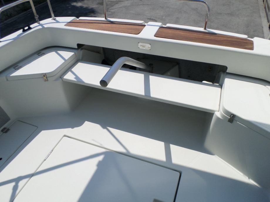Izvrstan fisherman sa ogromnim krmenim prostorom za sportski ribolov, kabina sa 2-3 ležaja, krmeni bimini top, velika platforma sa ljestvama , Garmin fishfinder, VHF , bazen za živu ješku, kormilo u krmi , klupa u krmi, brod je u iznimno dobrom stanju, samo 800 sati rada, upravo ispoliran, novi antifouling i cinkovi, močan i pouzdan Nanni diesel.