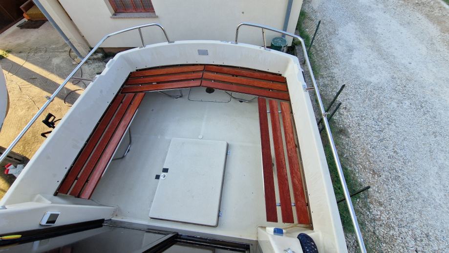 - inox preklopne vanjske klupe na krmi (4 komada) sa novim drvom