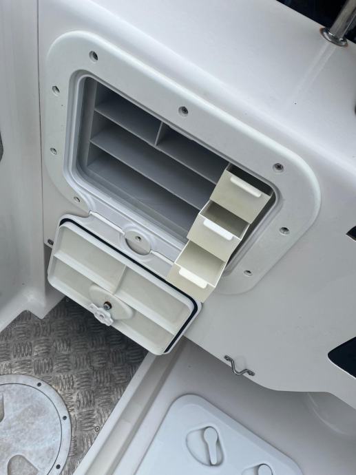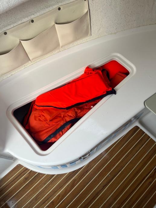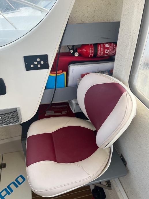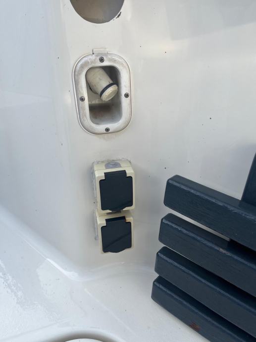 Tuš sa rezervoarom 60 l, sidro 60 m lanca, bunar za živu ribu, stol, frižider, automatska kaljužna pumpa, duple komande , kompletna oprema za 6 osoba, stabilizatori / flapsovi…..