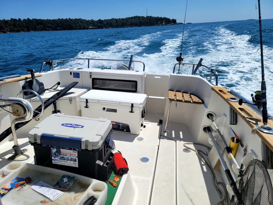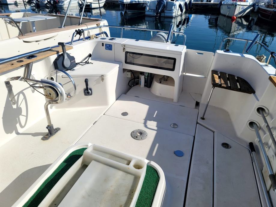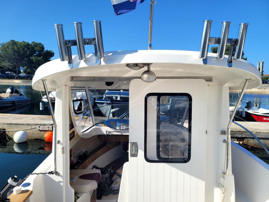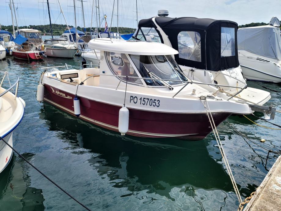 Very economical fisherman, Quicksilver Arvor 230 AS, 2008. Inboard VW Marine engine 110 KW, 150 HP with 670 hours fully serviced in 2022-2023. Second engine, outboard Honda 5,89 KW fully serviced 2022-2023 with complete outside command for trolling (very few hours). The boat has electric winch, electric flaps, bow thruster 2022, hydraulic steering, search light remote controlled, two navigation instruments, fishfinder (Lowrance Elite Ti 7 only 2 years old, and an original Garmin), compass, outside shower, inside sink with water pump, swim ladder, windscreen wipers, electrical outlets for electric reels or sardamatic, chemical toilet, live bait vessel, fishing rod holders, outdoor table etc. The boat is in very good condition, fully serviced, everything is fully functional and always ready for the sea. Cruising speed is 16 kn (very low fuel consumption) max speed 20 kn. The boat can be seen in Marina Parentium, Istria. More details on phone or email.