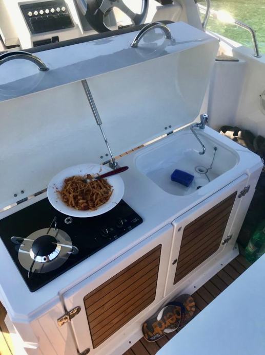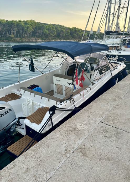 Ovaj Atlantic Marine 730 brod je potpuno opremljen za udobno plovidbeno iskustvo i omogućava vam da uživate u svim aspektima vodenih aktivnosti. S brojnim dodacima, od tende za potpuno zatvaranje broda, sjenila do LED rasvjete i modernog Garmin GPS-a, ovaj brod je spreman za raznovrsne izlete na vodu.