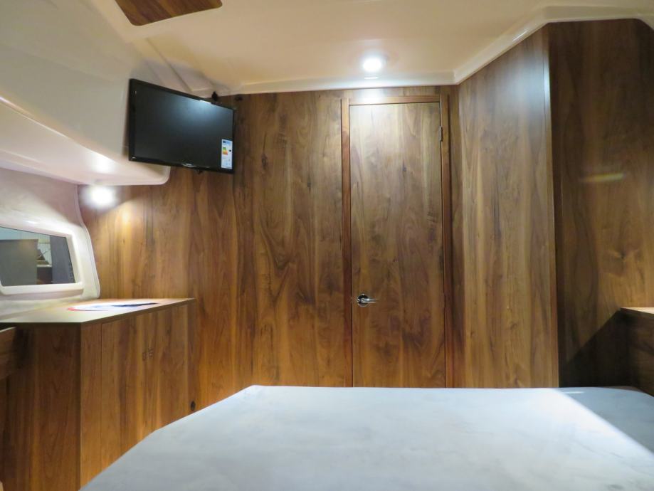 Ispod palube su 2 udobne kabine za spavanje koje se mogu zaključati. Imaju punu visinu za stajanje, kao i dostupnost ormarića za namještaj i udobnih kreveta pune veličine. A sve su to pažljivo, ugodno dovršili iskusni brodari brodogradilišta Balt-Yacht. Ni sanitarna kabina ne ograničava korisnika - svijetla je, ekonomična, prostrana i opremljena svim potrebnim instalacijama - WC, umivaonici, tuševi, grijanje i ventilacija.
