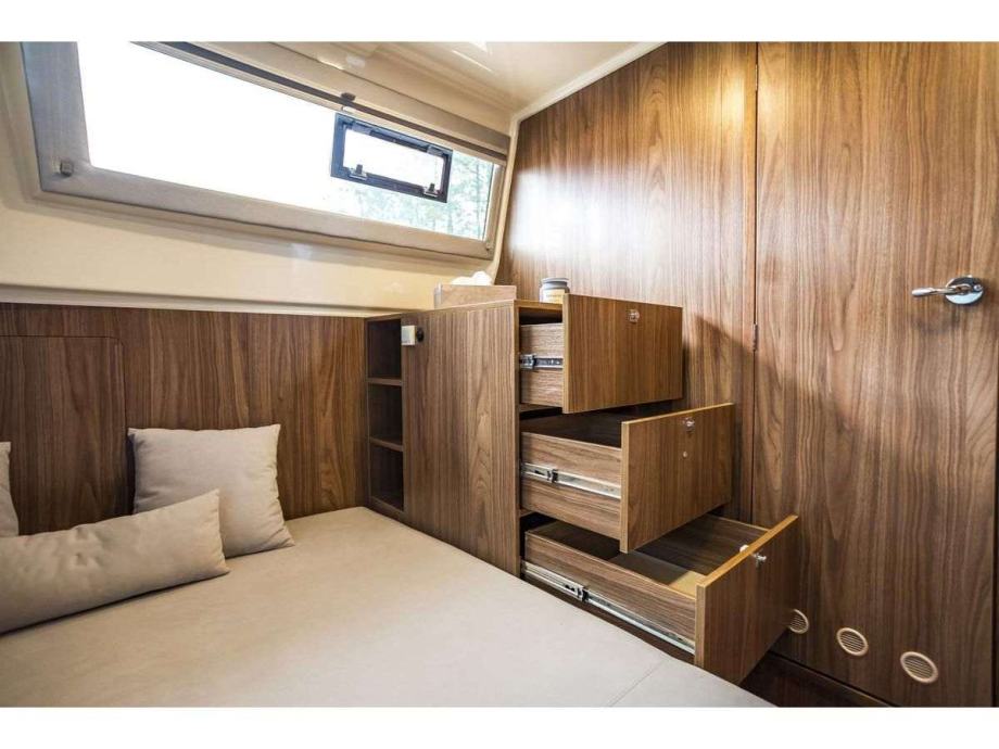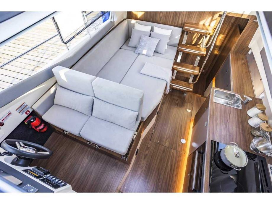 Prava fascinacija putovanja s Baltom 37 može se pronaći na prostranoj gornjoj palubi, smještenoj iznad krmene kabine. Ovo mjesto je savršeno za osjećaj kontinuiranog kontakta s okolnom prirodom. Na brodu Balt 37 Grand nalazi se glavna kormilarnica i funkcionalna salonska sofa s velikim, kvalitetnim stolom. Na zahtjev, vanjska kuhinja s hladnjakom, roštiljem ili sudoperom dostupna je na gornjoj palubi. U slučaju lošeg vremena, gornja paluba može biti sigurno pokrivena posebno dizajniranim punim kabriolet krovom. Dodatni pretinci i ormarići ispod sjedala kauča zanimljiv su i praktičan način održavanja reda u brodu. Sanjate li o odmoru nakon ručka na svježem zraku? Samo spustite stol u kokpitu i pretvorite sofu u bračni krevet koji će postati idealno mjesto za odmor. Osim toga, dvije udobne dvosjedne garniture smještene u pramčanom dijelu mogu se smjestiti u drugu sofu za odmor ili sunčanje.