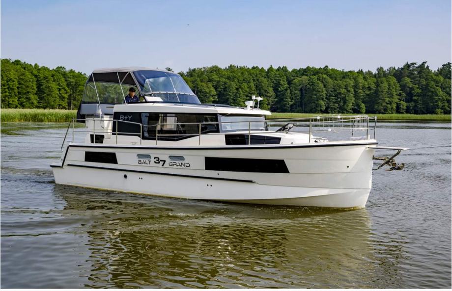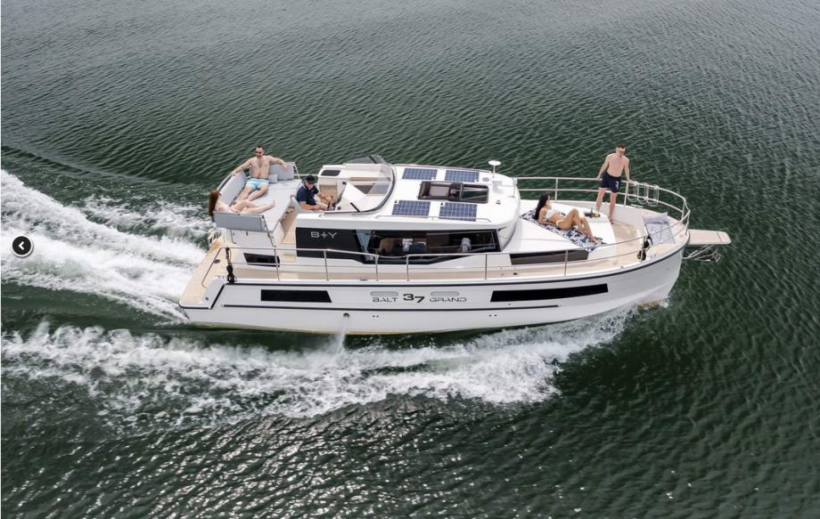 Novi Balt 37 Grand ističe se praktičnom komunikacijom koju pružaju široki polupalub i visoka ograda. Druga važna značajka je visina jahte, koja u najvišoj točki ne prelazi 2,92 m iznad vodene linije. Dakle, dizajn Balt 37 Grand preuzima najbolje od Flybridge jahti, dok eliminira rizike i nedostatke takvog rješenja.