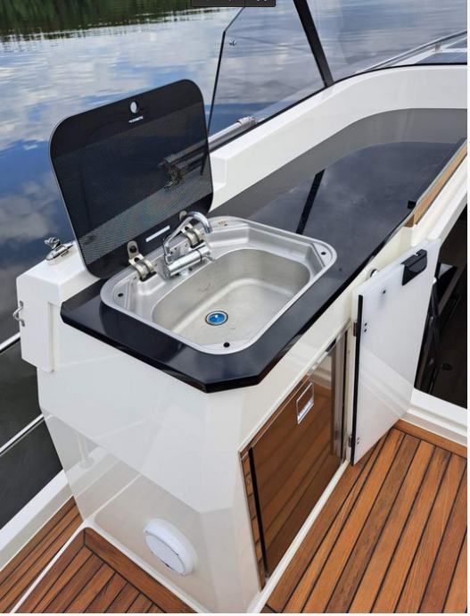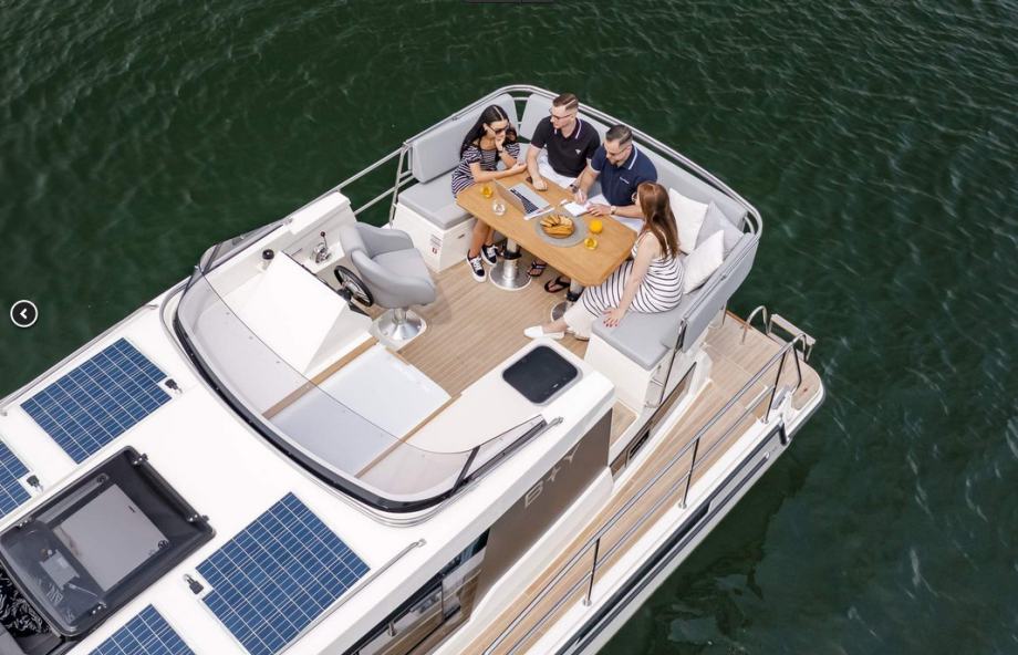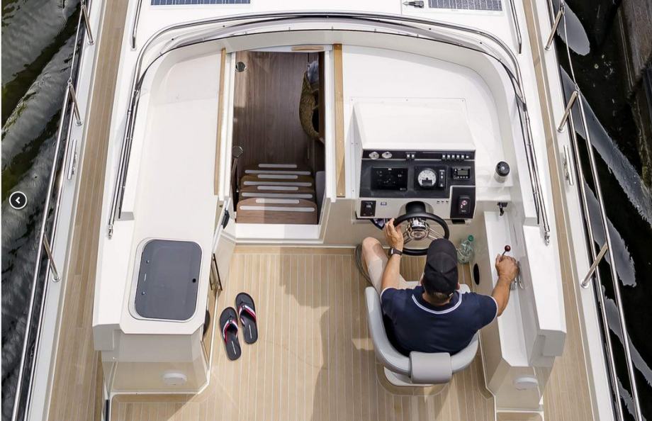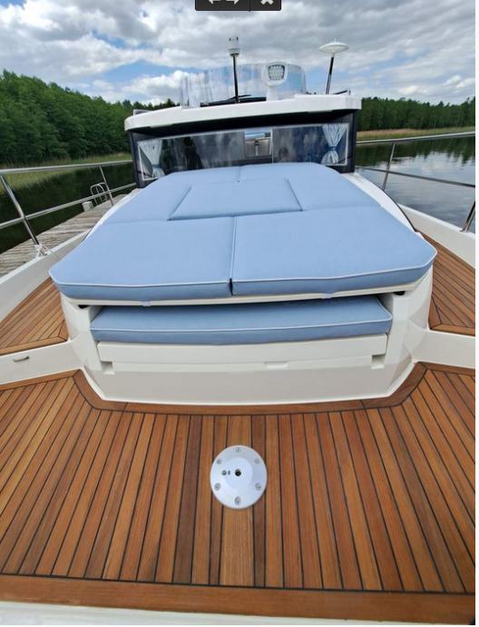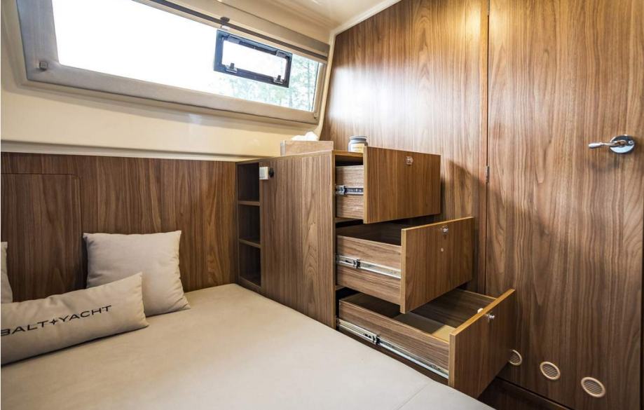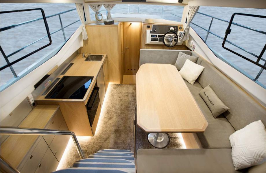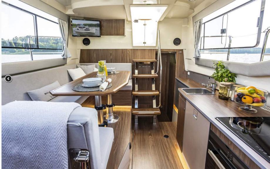 Prava fascinacija putovanja s Baltom 37 može se pronaći na prostranoj gornjoj palubi, smještenoj iznad krmene kabine. Ovo mjesto je savršeno za osjećaj kontinuiranog kontakta s okolnom prirodom. Na brodu Balt 37 Grand nalazi se glavna kormilarnica i funkcionalna salonska sofa s velikim, kvalitetnim stolom. Na zahtjev, vanjska kuhinja s hladnjakom, roštiljem ili sudoperom dostupna je na gornjoj palubi. U slučaju lošeg vremena, gornja paluba može biti sigurno pokrivena posebno dizajniranim punim kabriolet krovom. Dodatni pretinci i ormarići ispod sjedala kauča zanimljiv su i praktičan način održavanja reda u brodu. Sanjate li o odmoru nakon ručka na svježem zraku? Samo spustite stol u kokpitu i pretvorite sofu u bračni krevet koji će postati idealno mjesto za odmor. Osim toga, dvije udobne dvosjedne garniture smještene u pramčanom dijelu mogu se smjestiti u drugu sofu za odmor ili sunčanje.