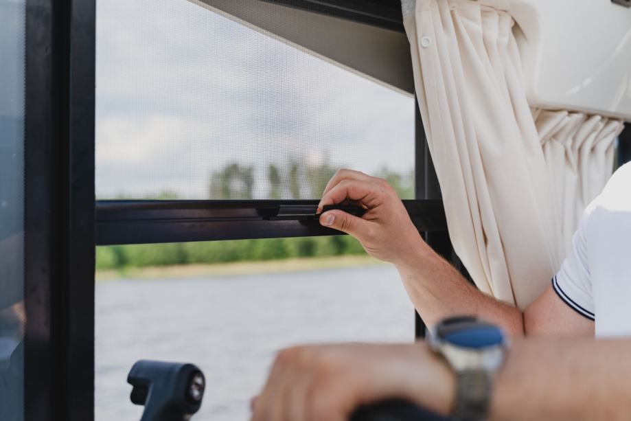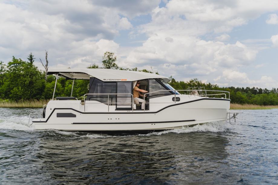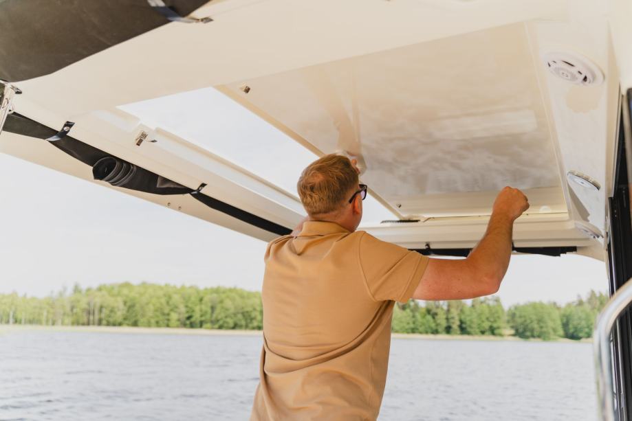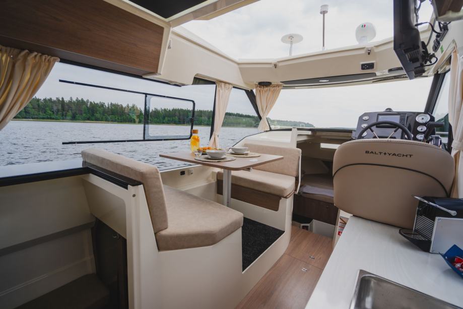 Jedna od njegovih najvažnijih značajki je velika unutrašnjost, koja uključuje 2 kabine, kormilarnicu i kupaonicu. I svijetla unutrašnjost plovila i kokpita prekriveni su krovom s dva pomična poklopca. Poklopci se lako otvaraju, omogućujući bolju ventilaciju i sunčevu svjetlost. Stražnji poklopac je dizajniran tako da na njega po želji možete postaviti solarne ploče.