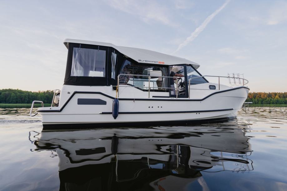 Sigurna plovidba čak iu plitkim vodama SunCamper 29 je dizajniran za izvrsne performanse u različitim vodama. Između ostalog, lako se snalazi u relativno plitkim vodama. To je moguće zahvaljujući upotrebi triju uzdužnih donjih vodilica. Oni štite dno trupa i propeler motora od mogućih podvodnih prepreka i osiguravaju dobru smjernu stabilnost i malu ovisnost o okretanju. Sve to čini plovidbu još sigurnijom.