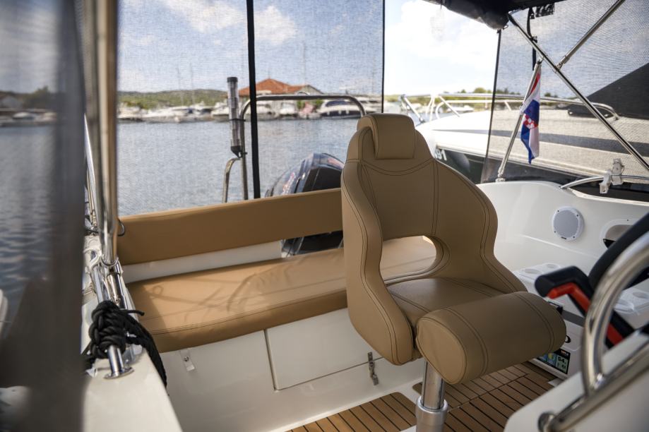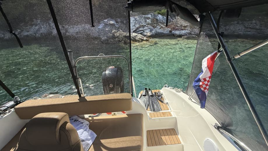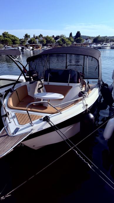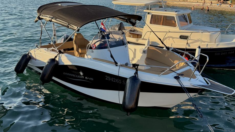 Prodajem oki boats barracuda 545 s mercuryjem 115 XS pro command trust . Brod je u savrsenom stanju. penta je na brodu od prvog dana. jako zanimljiv model mercuryja s command trust getribom koja je pojacana serija u odnosu na obicnu. Penta posjeduje i modul koji je prikljucen na mercury vesselview satove. Ima dva nezavisna sata svaki ima analognu+ digitalnu funkciju te se preko njih mogu ocitavati svi potrebni parametri za brod od potrosnje, pritiska ulja, kolicine goriva u tanku, okretaja, brzine i mnogo drugih funkcija. Posjedujem propelu s 3 kraka koja je na penti trenutno montirana i s 4 kraka kao opciju. Brod ima i jako kvalitetan roll bar za vucu iako nije koristen pa se propela s 4 kraka moze korititi u svrhu vuće. Motor ima trenutno oko 270h. Od opreme ima sve sto bi se na takvu brodicu mogo staviti. Tank za gorivo je 120L, a posjeduje i tuš s tankom od 40L. Bimini je od kvalitetnog inoxa jako cvrst i netreba se bojati ostaviti ga ni po jacem vjetru. Na biminiju je napravljeno još nekoliko stvari kao što su patent i čičak na vrhu na koji je montiran fleksibilni solar snage 100w s pripadajucim victron kontrolerom koji ima i bluetooth nacin povezivanja te u svakom momentu mozete kontrolirati stanje baterije putem mobitela. Na bokovima biminija su takoder s unutarnje strane patenti na koje se montira crni mesh bez kojega je cjelodnevni boravak nemoguc. Idalno stiti od sunca a u isto vrijeme cirkulira zrak. spojen je skros u krug te se svaki segment moze otvarati zasebno po potrebi a straznja strana je pogotovo dijelljiva u tri dijela tako da mozete zatvoriti sve, a ostaviti samo izlaz prema skalama. Kušini su u savršenom stanju. kabina je dovoljna za prespavati za nuždu, a najcesce služi kao prostor za spremanje kušina ili stvari tako da ste sigurni da se nece smociti. Brod je zbog svoje širine izuzetno prostran i stabilan s obzirom da pricamo o brodu dimenzija 5,45 x 2,45. Fenderi su kupljeni cak malo predimenzionirani ali jako dobro stite i crne su boje pa pašu uz brod. Naprijed je stavljen špirun radi lakseg sidrenja i ulaska u brod. Brod je cijeli prekriven umijetnom tikovinom. Posjeduje i simrad go5 ploter sa sondom te radio fusion s 4 zvučnika. Sve sto sam nabrojao je vidljivo na slikama i slike su sadašnje, stvarno stanje. Nikad nije bio rentan. Opreman je za privatno koristenje te zbog toga i ima mnogo više opreme nego je uobicajeno. Ove godine je prvi put stavljen koper pa je sukladno tome i odradena cijela priprema. uz brod dolazi jos mnogo opreme koje nisam nabrojao te je kao takav spreman za plovidbu bez ikakvih ulaganja. Konopi, prsluci, aparat za gasenje, baklje, prva pomoć i jos mnogo toga. U cijenu ulazi i trailer Brenderup nosivosti 1500 kg vrijednosti preko 2500€ polovan. Trenutno se brod nalazi u marini na vezu te se može i isprobati s tim da se kroz 20 dana mozda malo vise vadi vani te ce biti na suhom vezu. Posjeduje cerade za pokrivanje sjedala komandnog mosta i pente za ljeto te ima i zimsku ceradu. Registritan je trenutno na gospodarske svrhe ovu godinu jer je bio jedini nacin za dobiti vez ali s obzirom da sam ovo ljeto dobio vez u marini planiram ga vratiti na privatne svrhe kroz mjesec dana tj kad izade na suhi vez, tako da ako se proda u periodu prije prebacivanja na osobne potrebe ako kupujete za gospodarske svrhe tehnicki vam vrijedi do 2027 godine. Jedini razlog prodaje je sto zelim preci na drugaciji tip broda s kabinom za zimski ribolov i imam malo dijete pa zelim imati kabinu u slucaju vjetra i za izlet na vise dana.